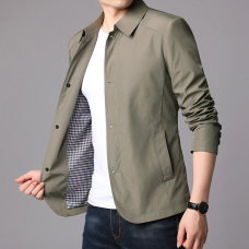 2021新款翻领夹克男士商务休闲薄款外套春秋修身青年茄克男