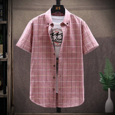 2020男士夏季新款衬衣格子衬衫男韩版潮流夏季休闲花寸衫
