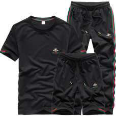 2022夏季男士三件套高端小蜜蜂锈花轻薄透气舒休闲运动三件套