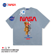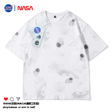 NASA国潮夏季男士短袖T恤潮流宽松半袖T恤圆领印花纯棉上衣
