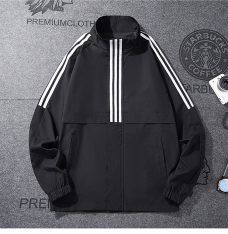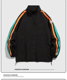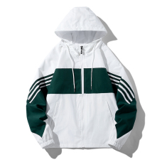 三条杠夹克男士春秋拼色夹克宽松休闲连帽外套