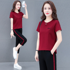 2022女套装大码运动服夏季短袖七分裤洋气时尚休闲装两件套