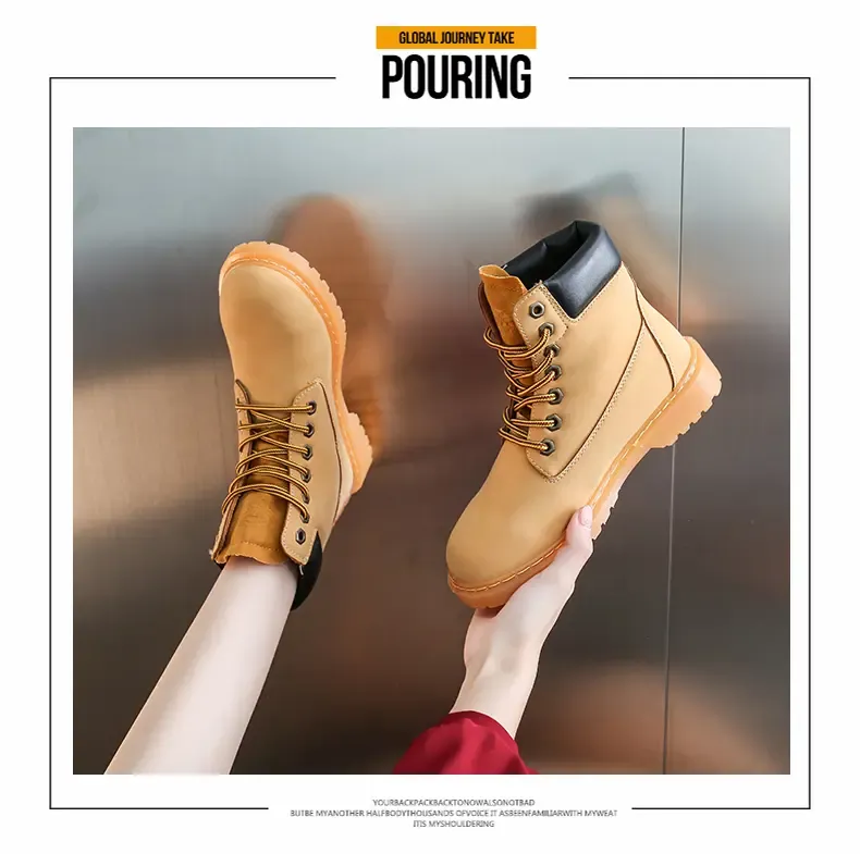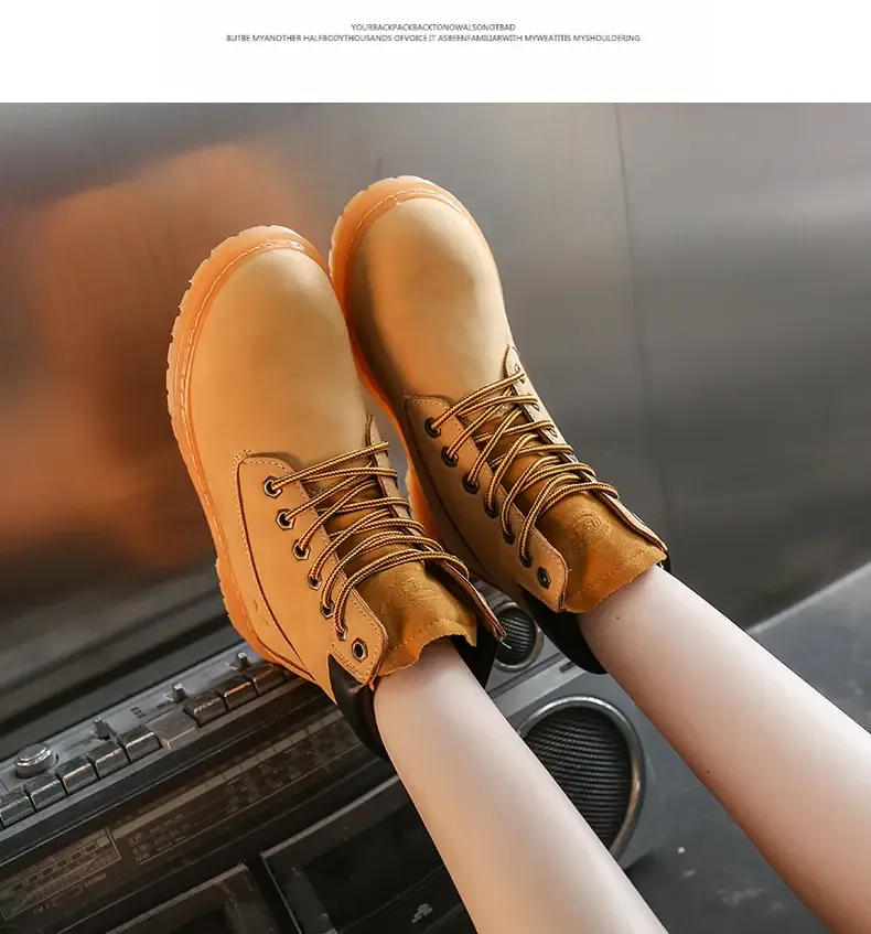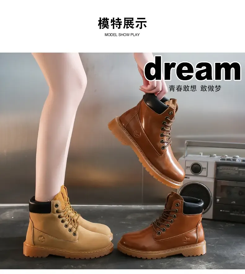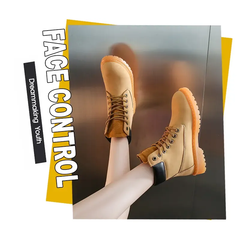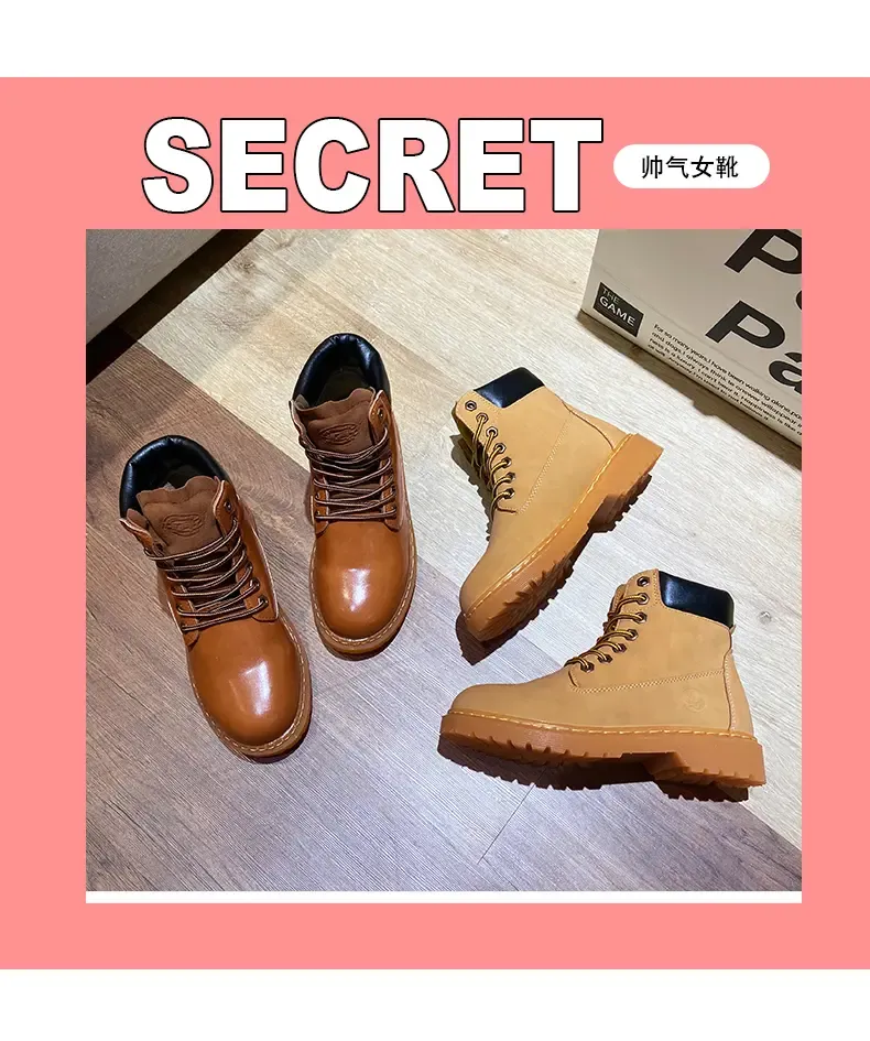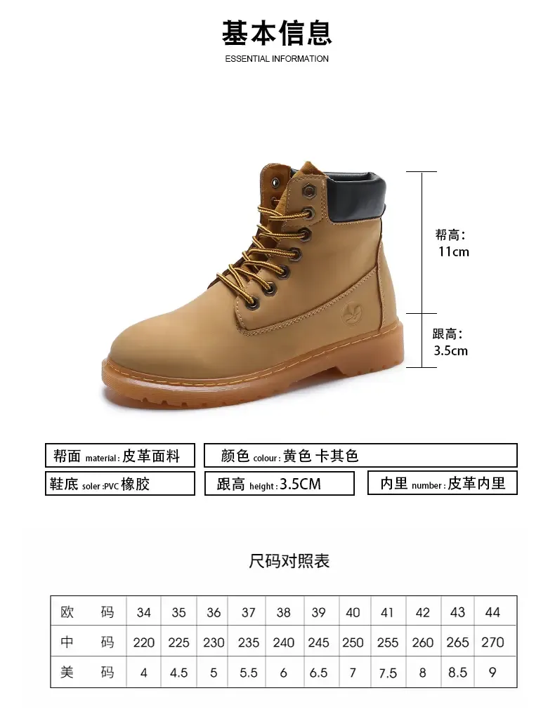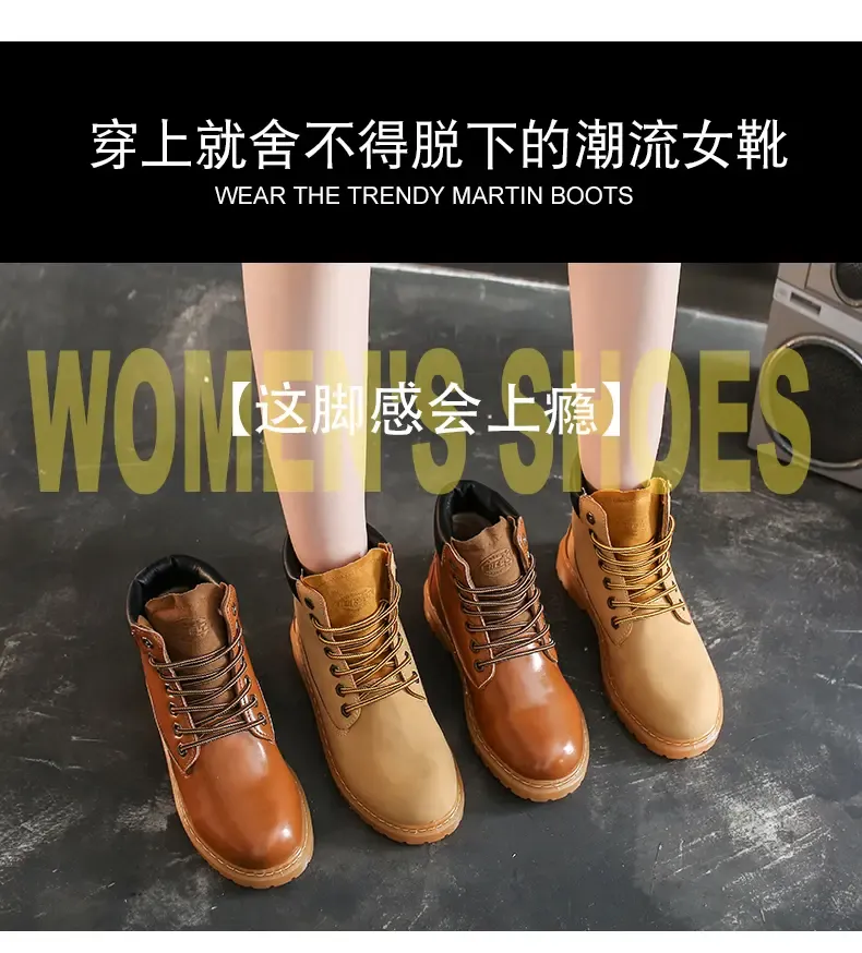 涌哥女鞋 0591 秋冬款高帮马丁靴工装鞋机车靴大头鞋小黄靴