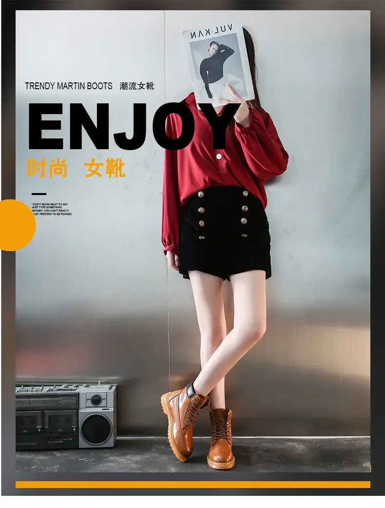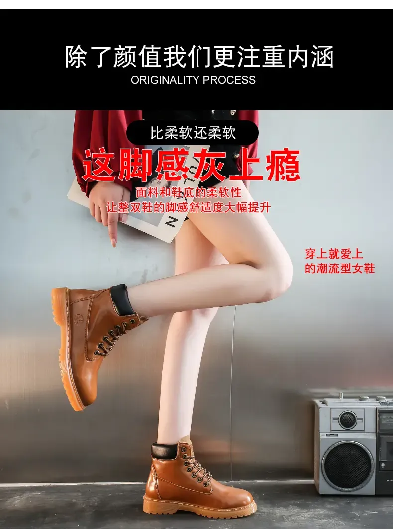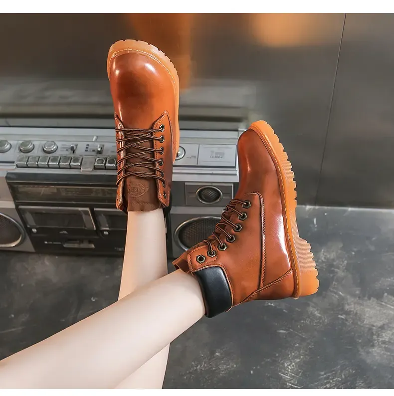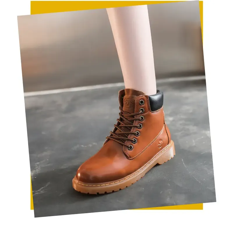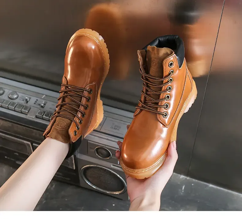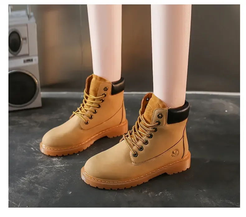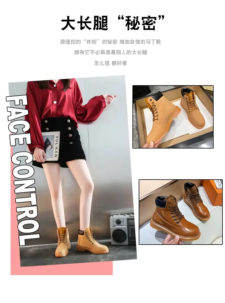涌哥女鞋 0591 秋冬款高帮马丁靴工装鞋机车靴大头鞋小黄靴