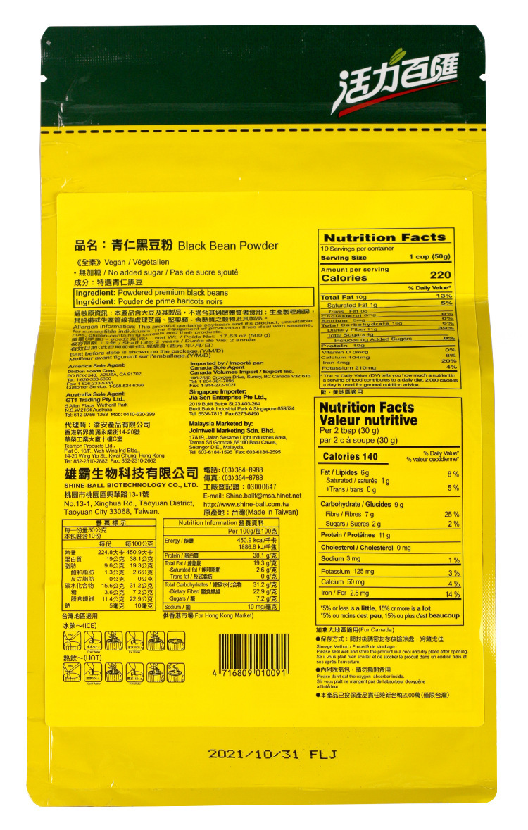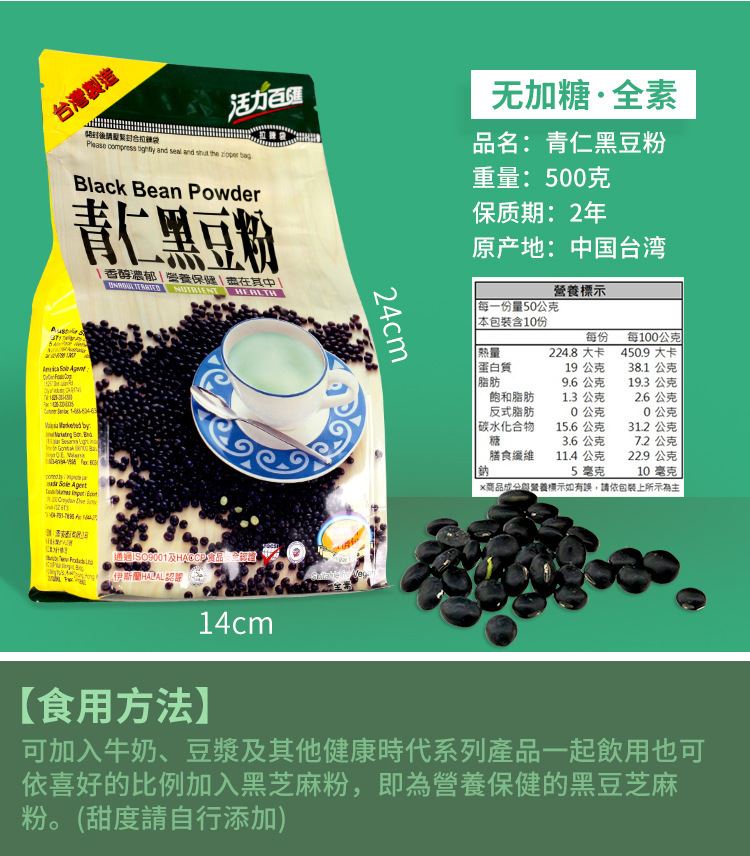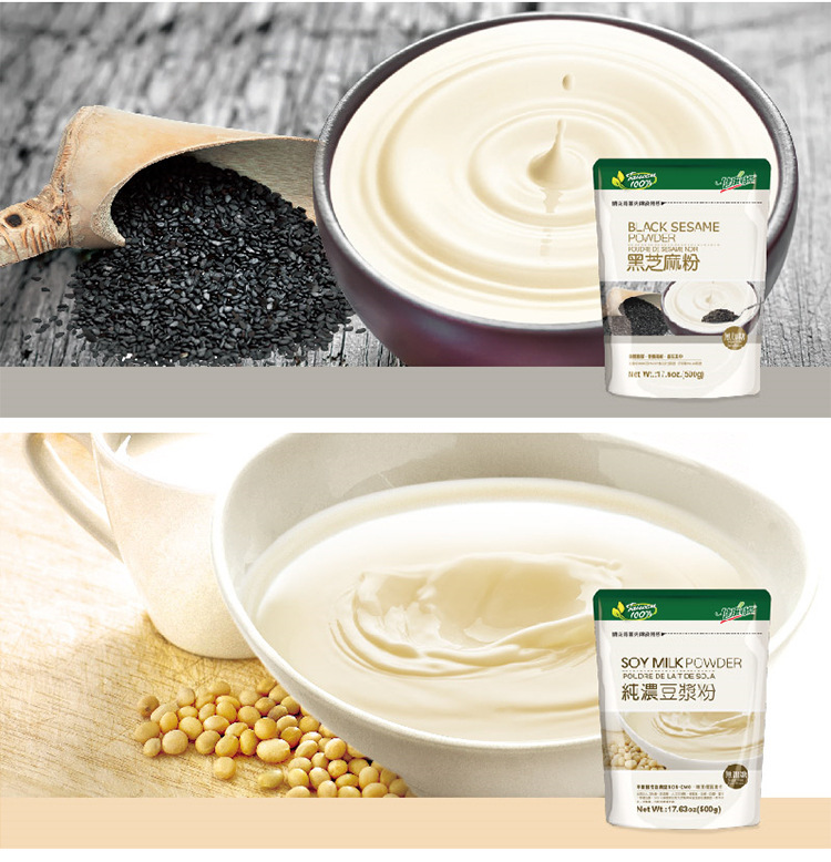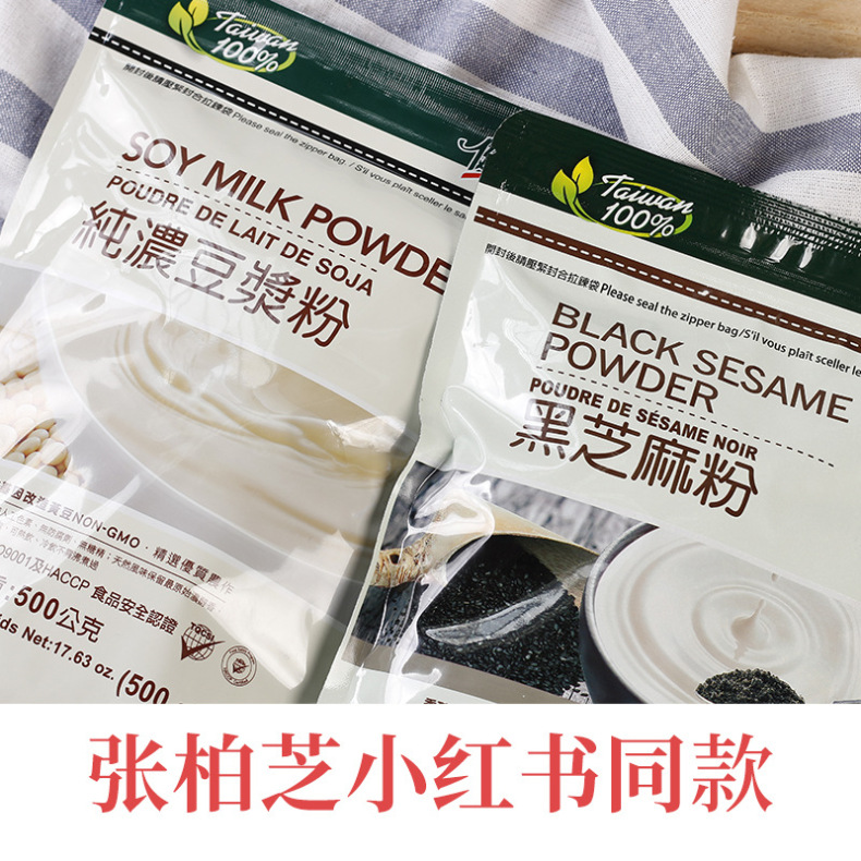 纯浓豆浆粉500克,黑芝麻粉420克,薏仁粉500克,杏仁粉500克,青仁黑豆粉500克,高纤黑豆浆500克,烧仙草15g*15包