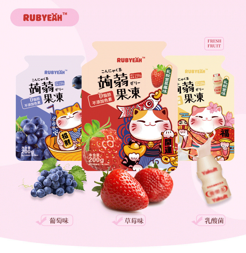 乳酸菌蒟蒻果冻乳酸菌味【1袋/200克】,乳酸菌蒟蒻果冻草莓味【1袋/200克】,乳酸菌蒟蒻果冻葡萄味【1袋/200克】