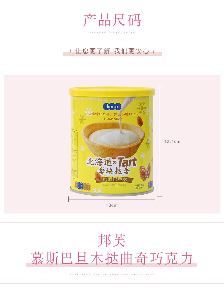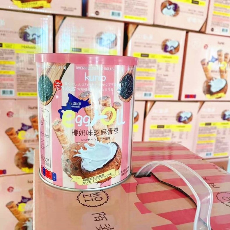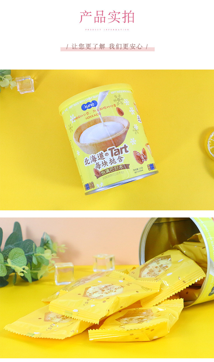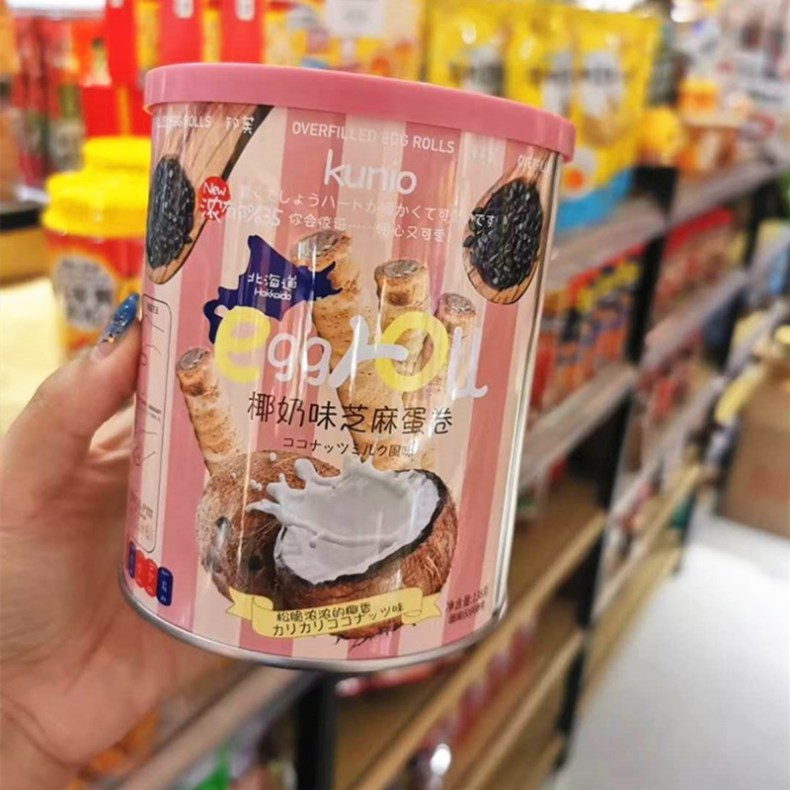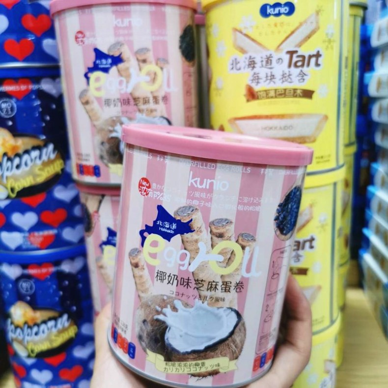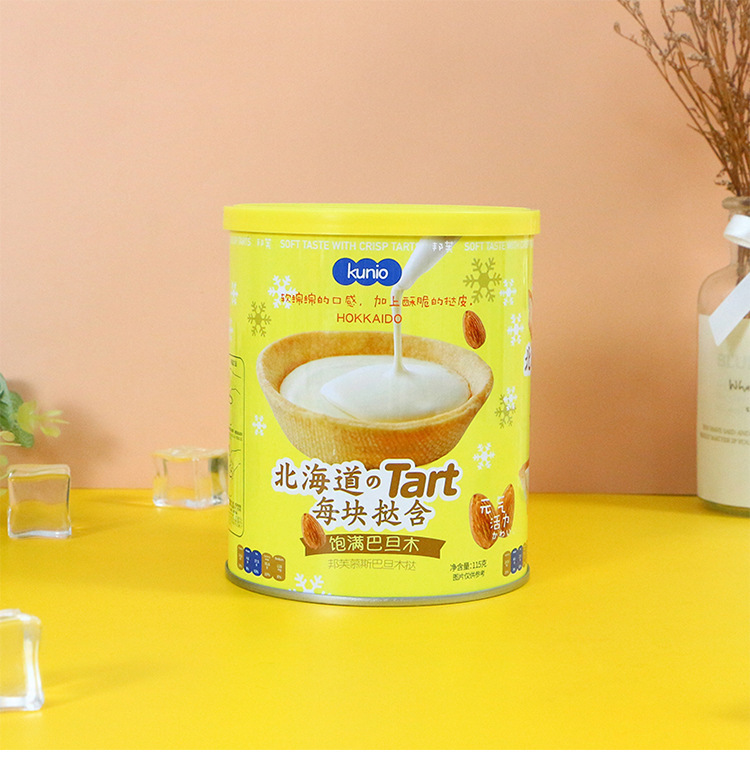 Kunio北海道椰奶味芝麻注心蛋卷138g铁罐装 巴旦木蛋挞曲奇茶点心