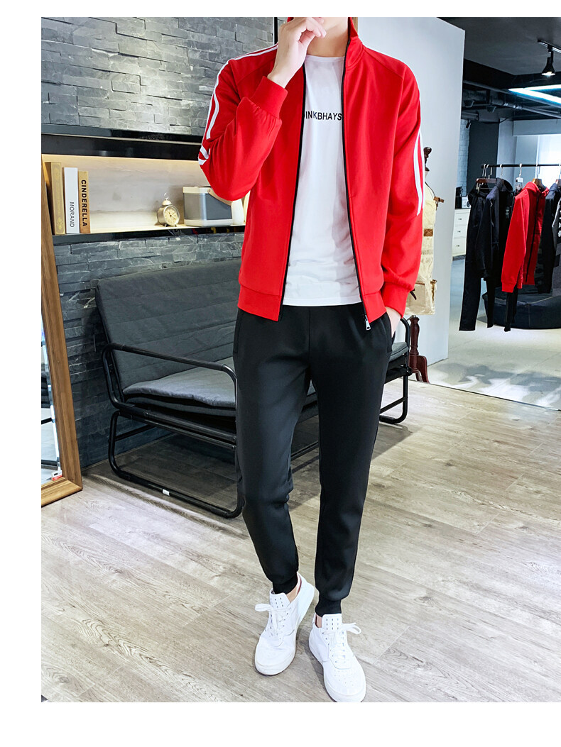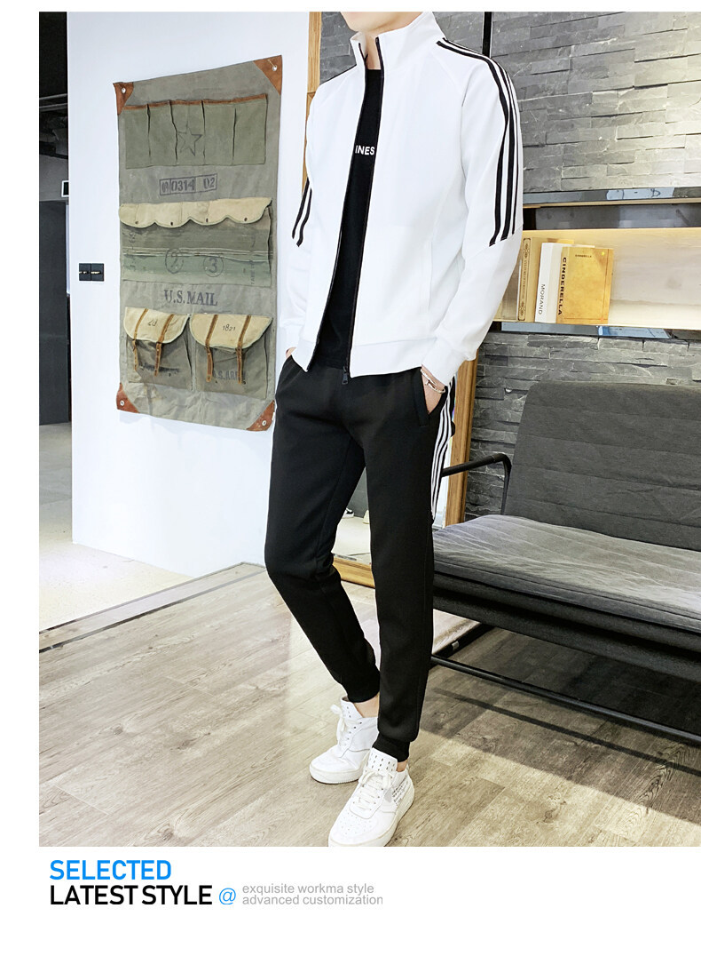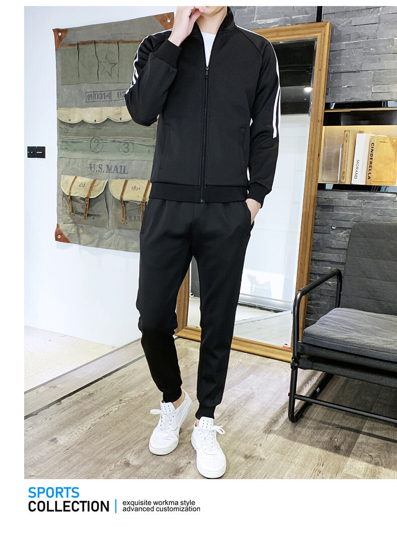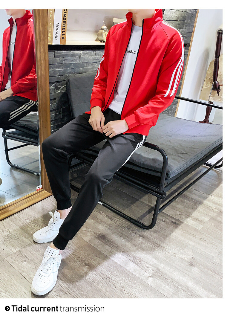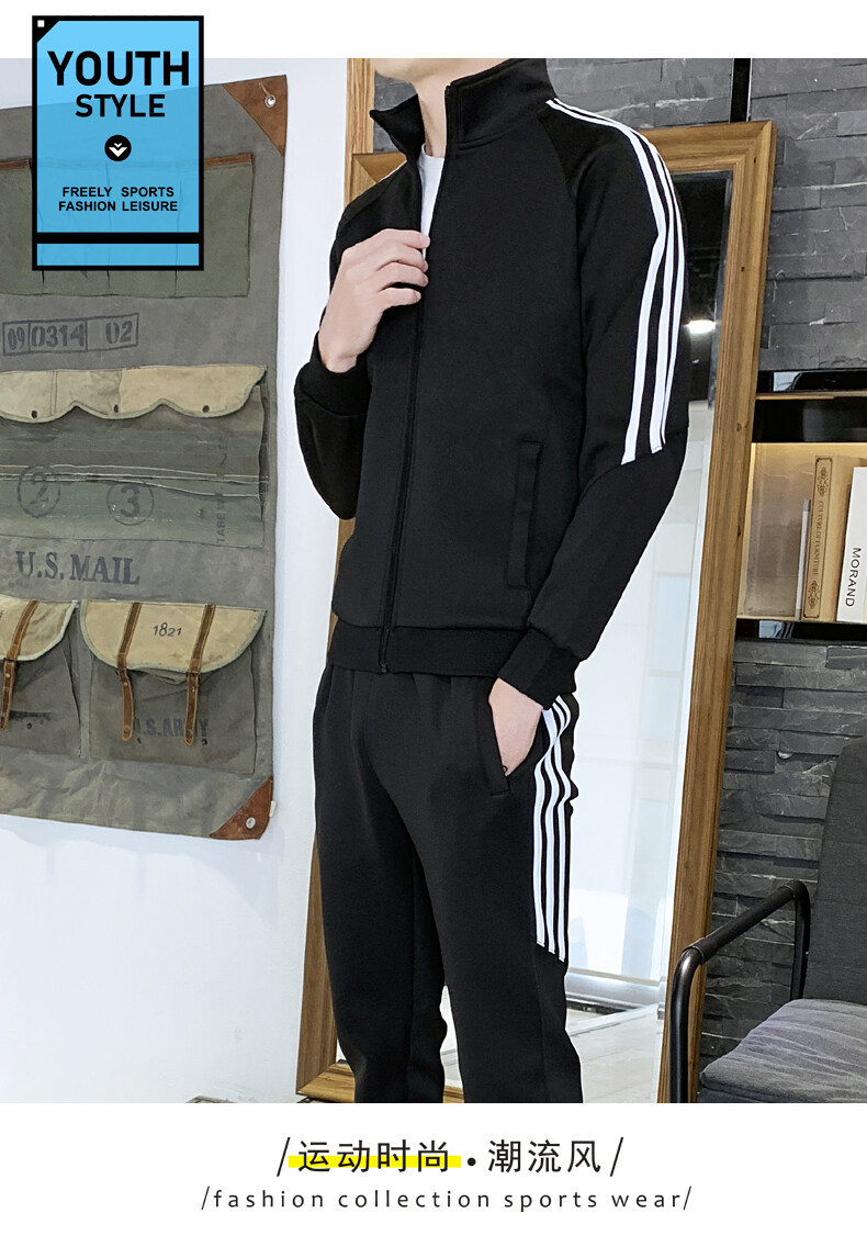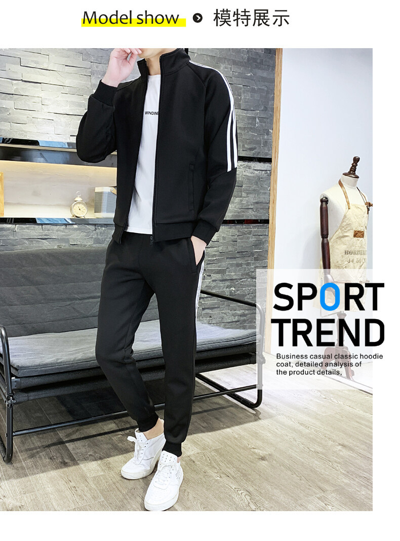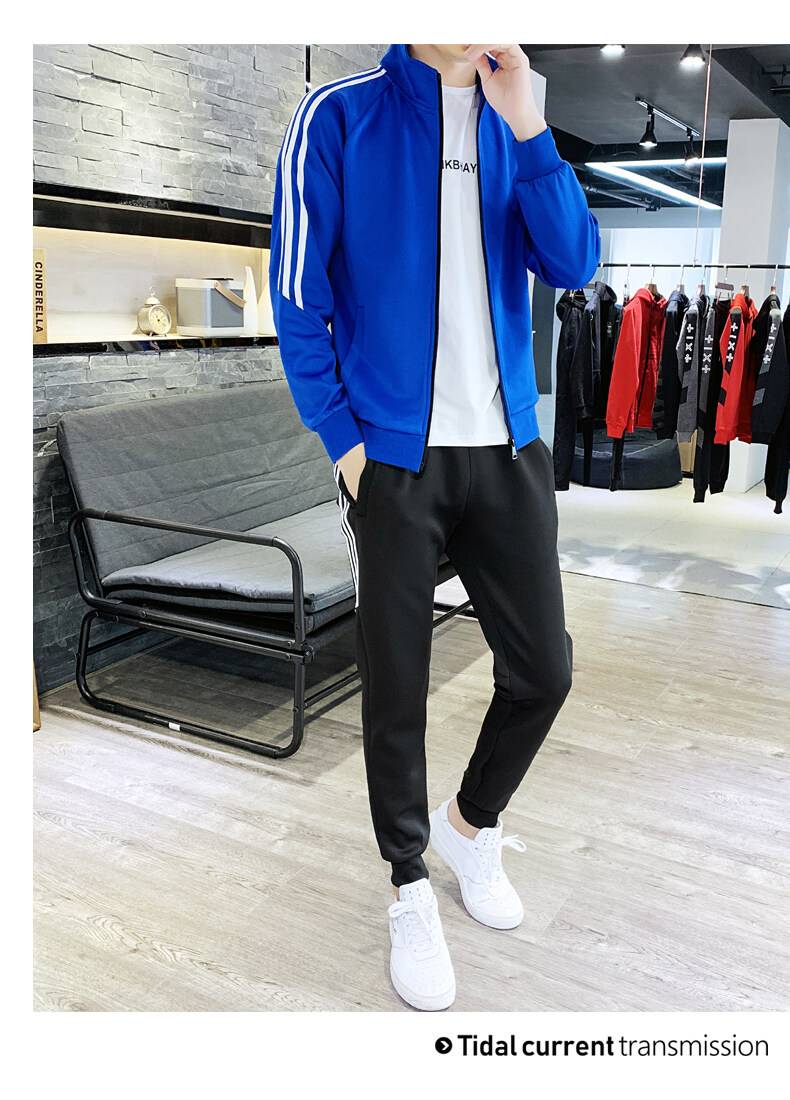2021春秋款新款男士休闲运动开衫套装韩版潮流修身卫衣两件套