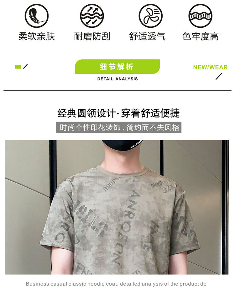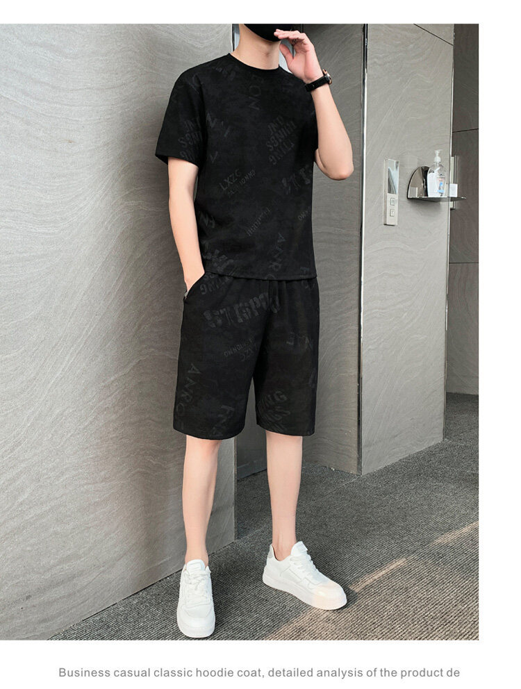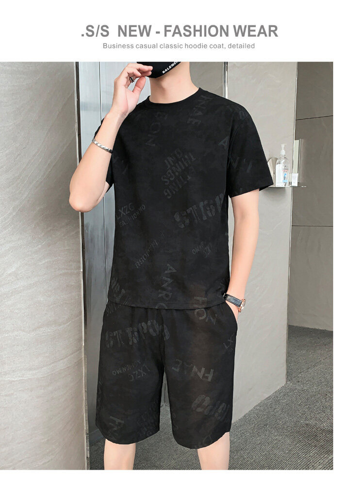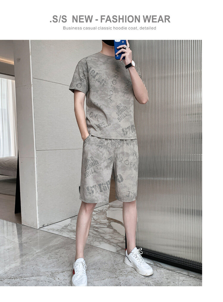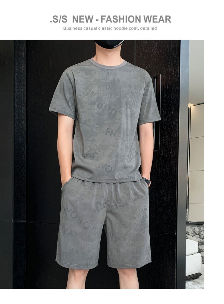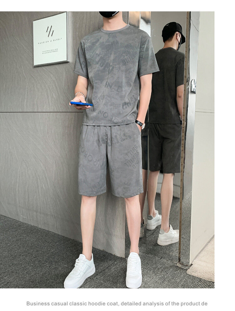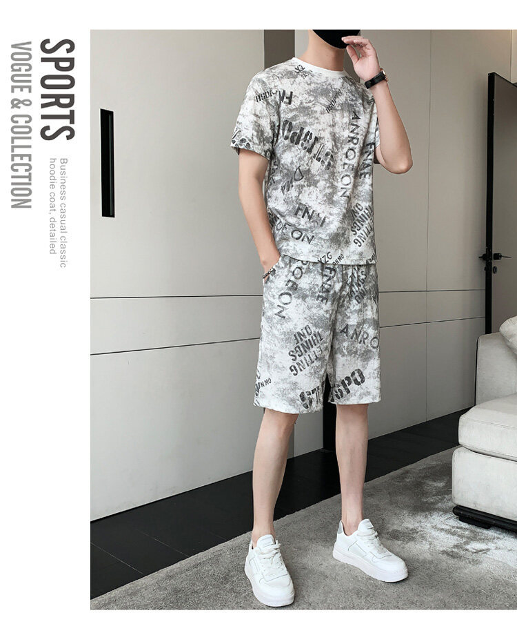 2022夏季新款短袖五分裤套装男冰丝T恤运动男士印花两件套