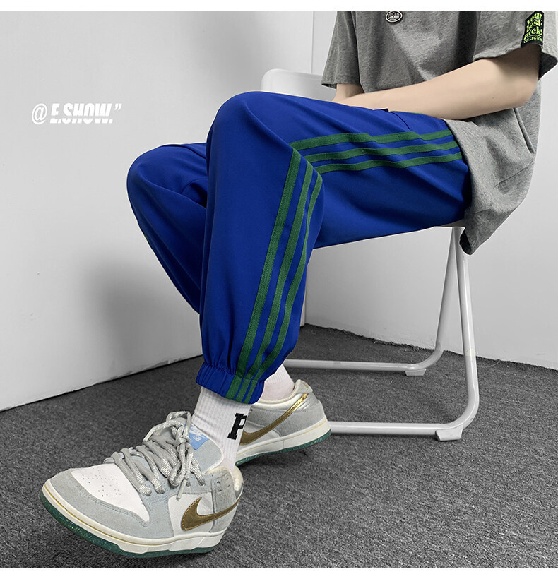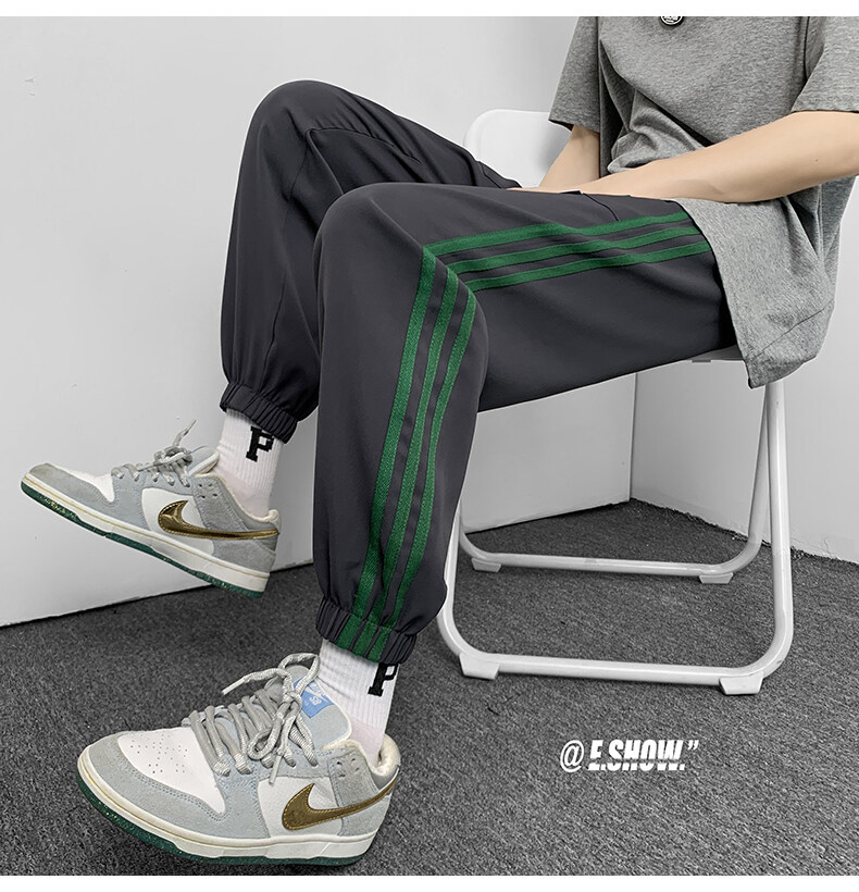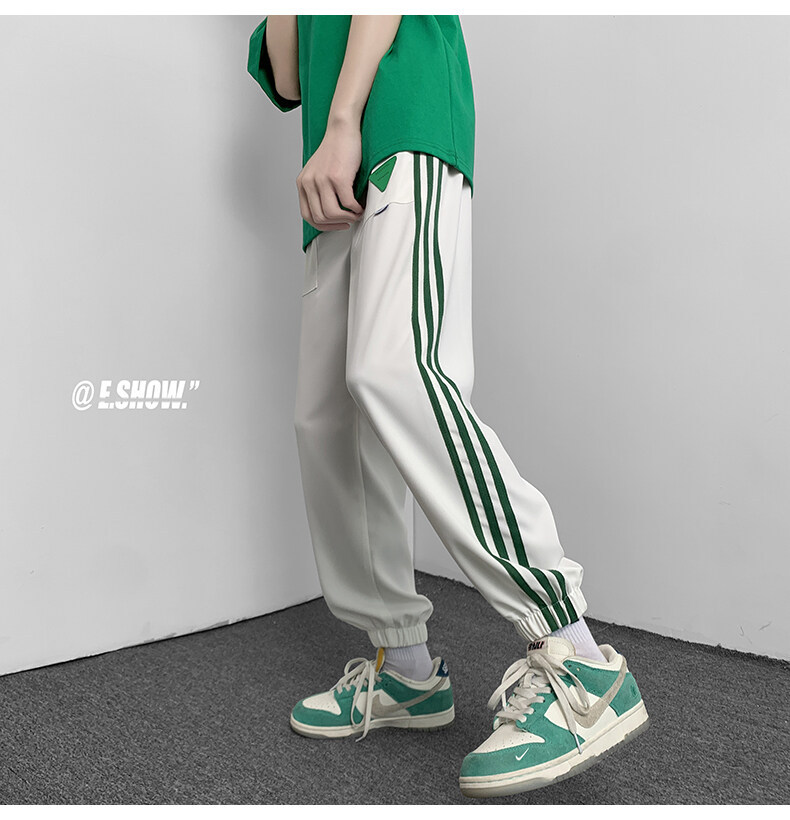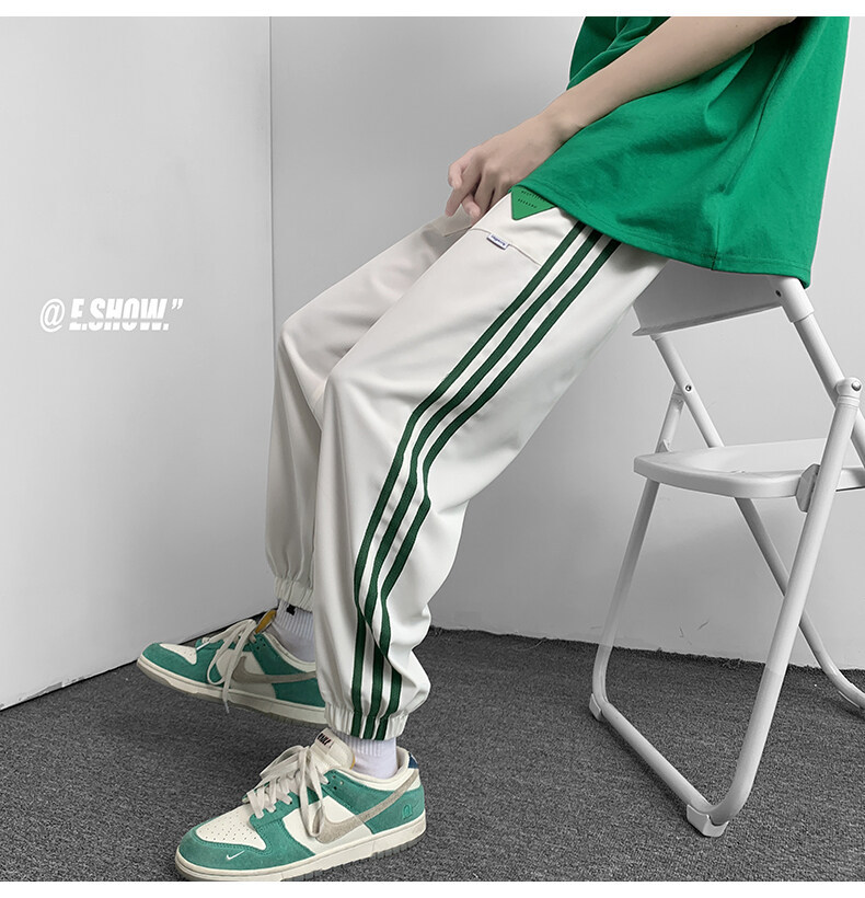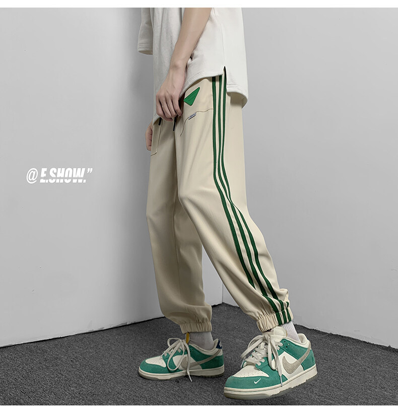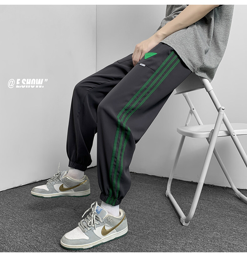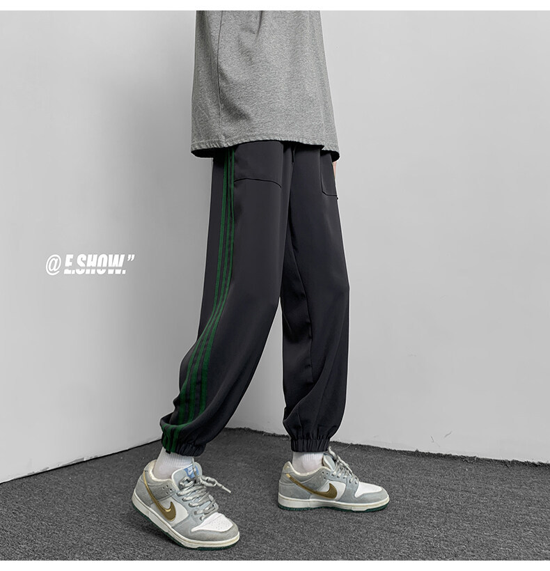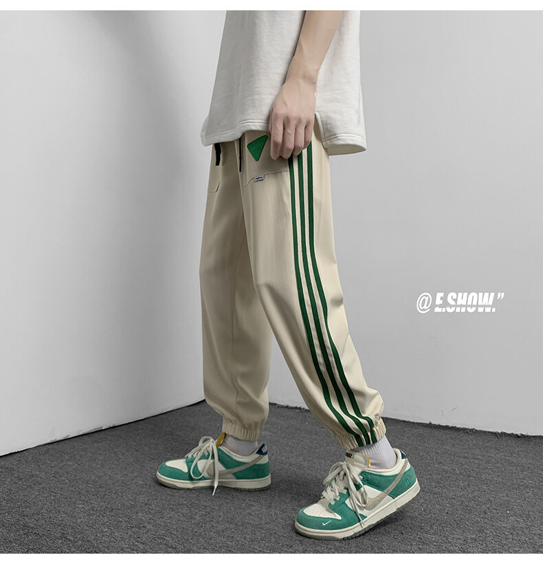 2022夏季休闲裤斜纹冰丝休闲裤子三条杠直筒束脚裤校裤