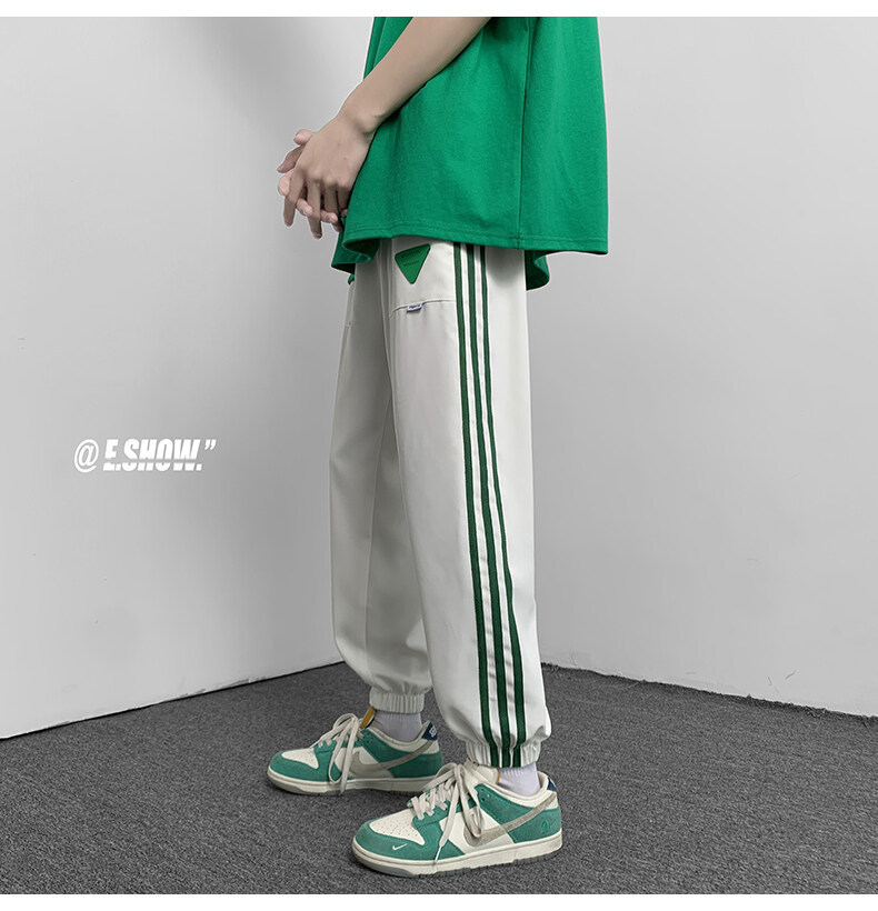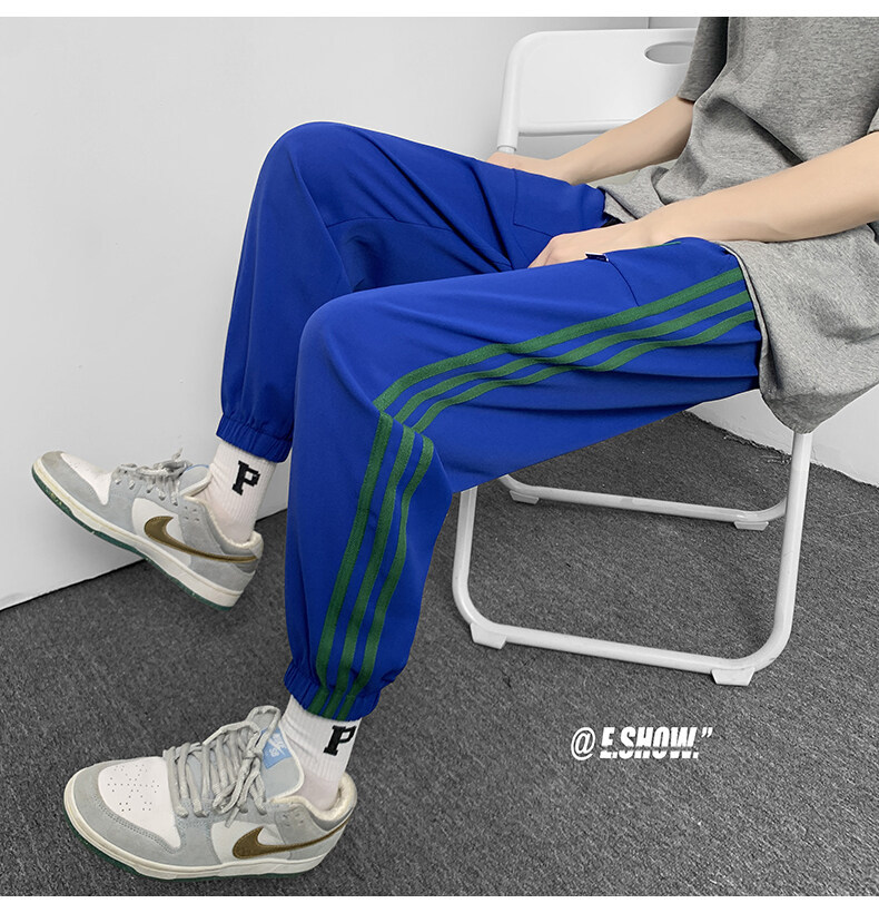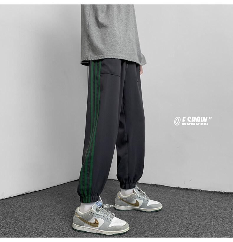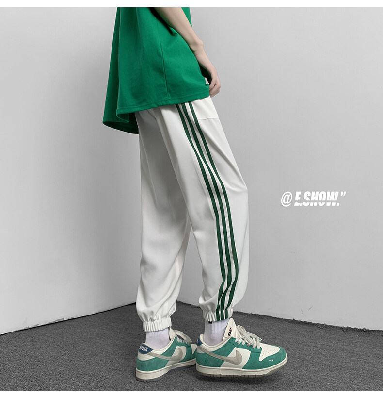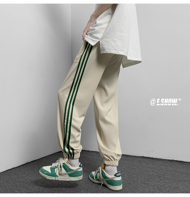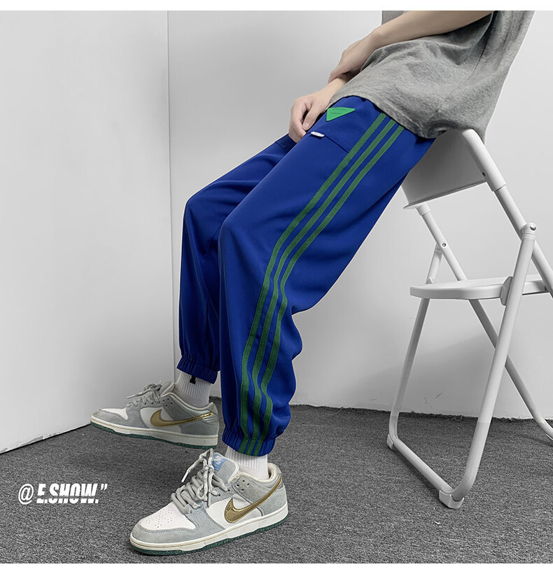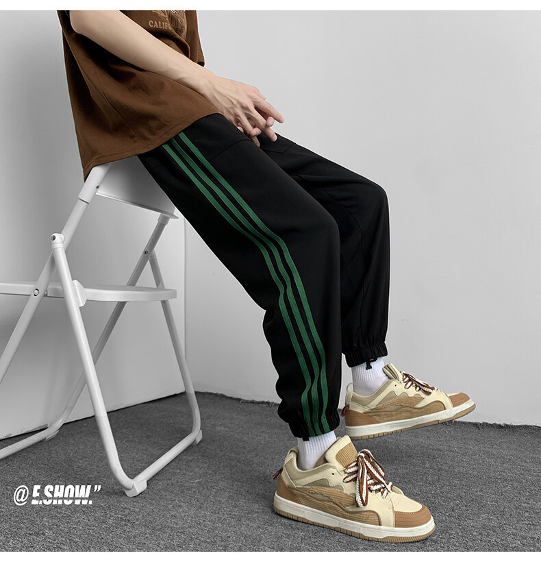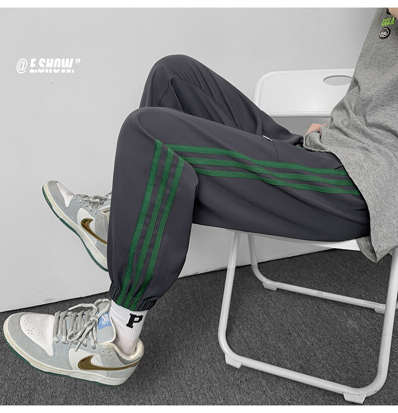 2022夏季休闲裤斜纹冰丝休闲裤子三条杠直筒束脚裤校裤