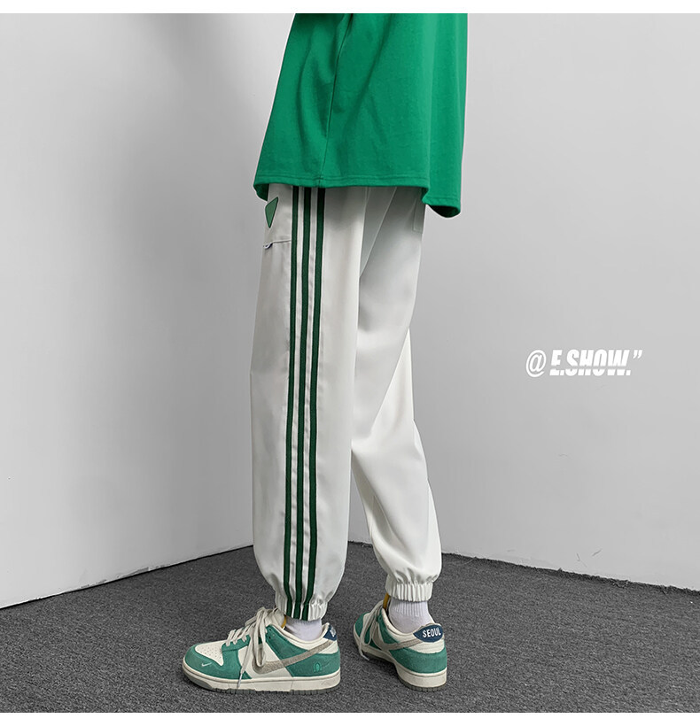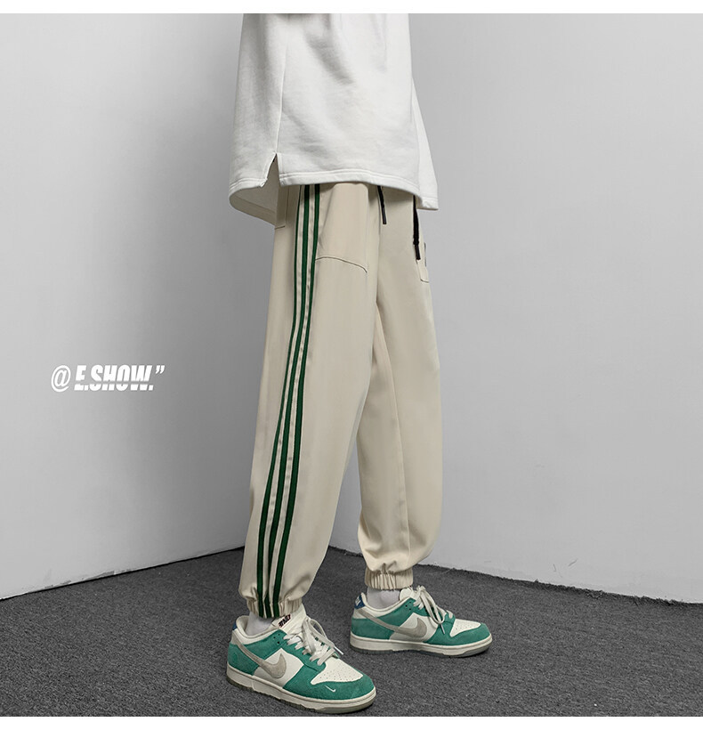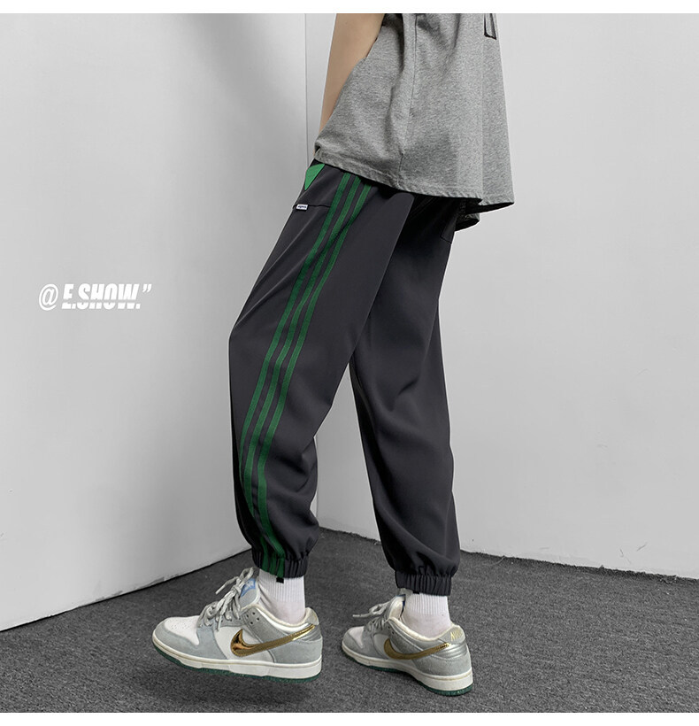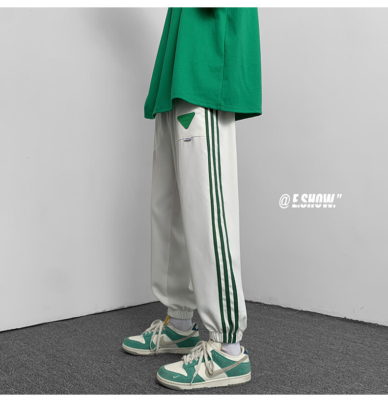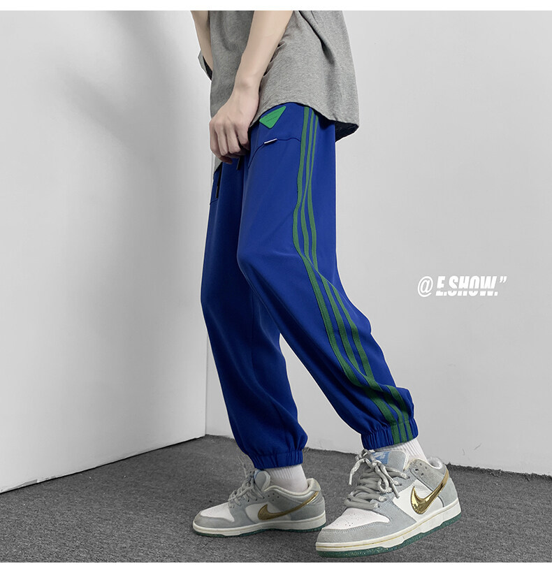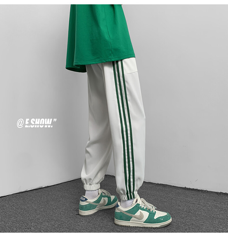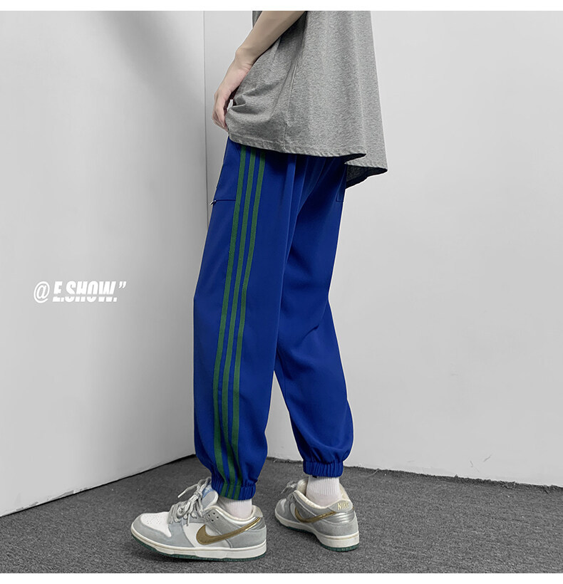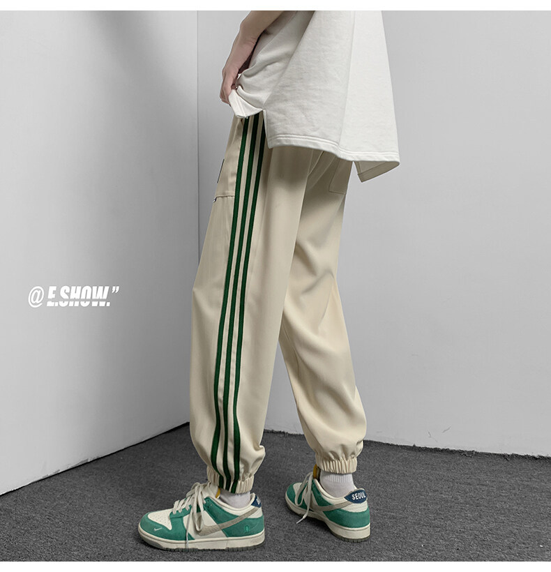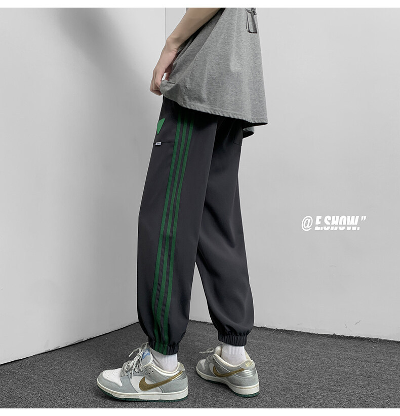 2022夏季休闲裤斜纹冰丝休闲裤子三条杠直筒束脚裤校裤