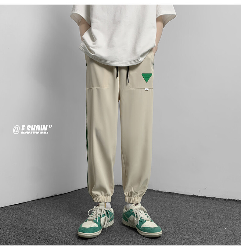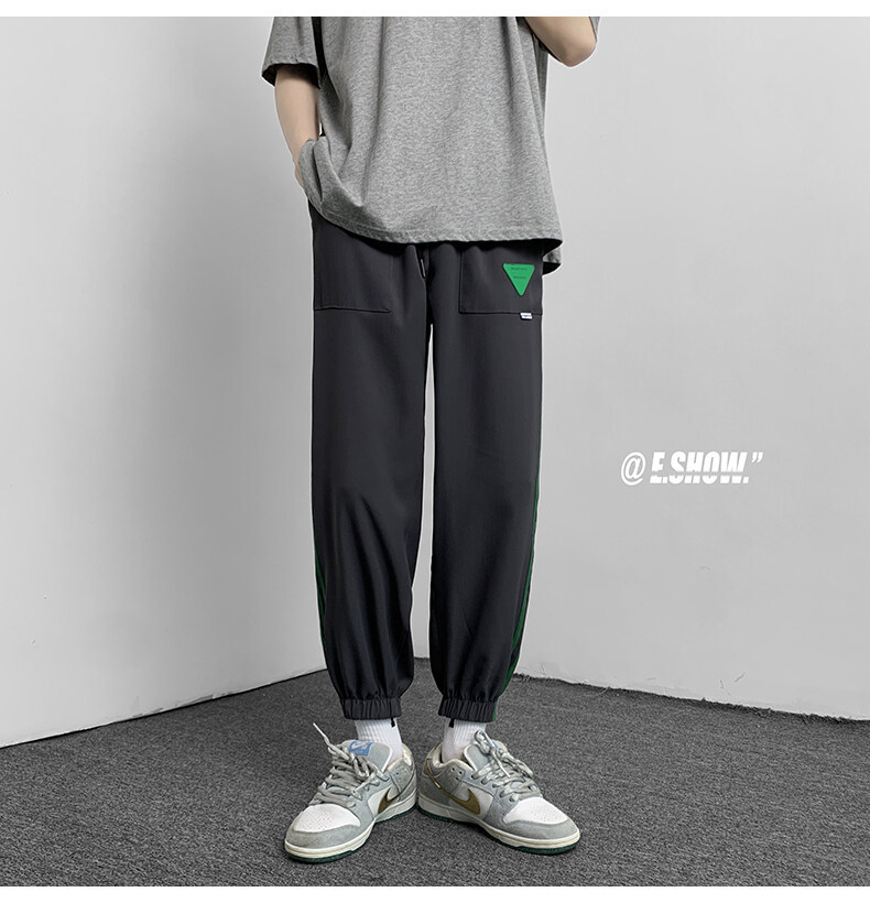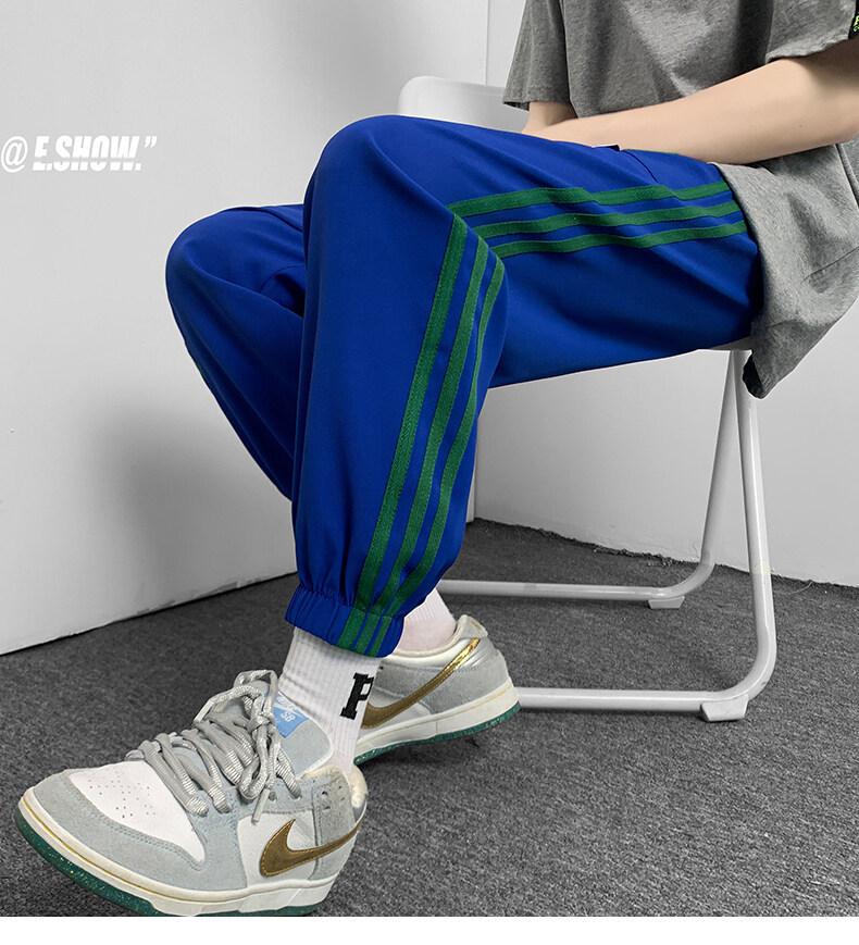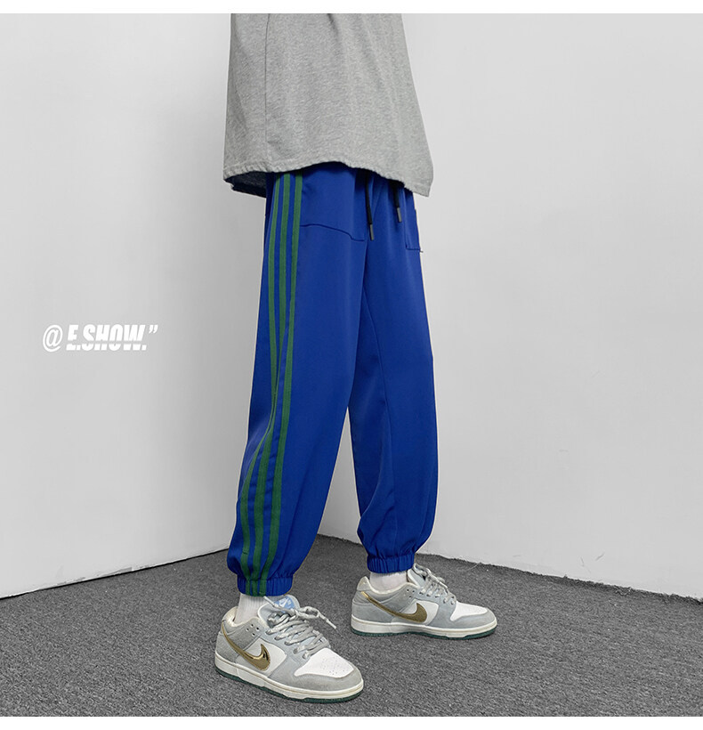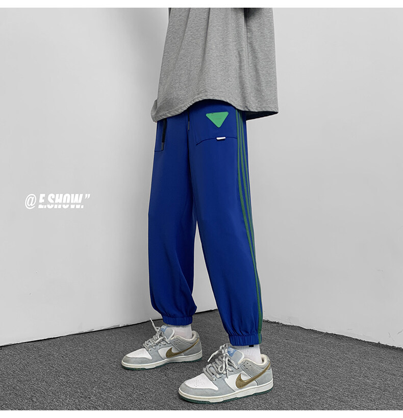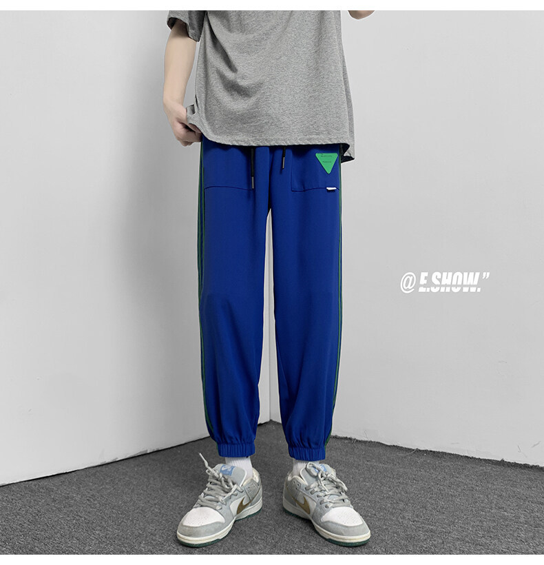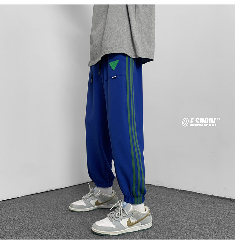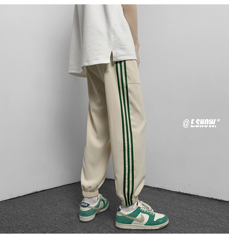 2022夏季休闲裤斜纹冰丝休闲裤子三条杠直筒束脚裤校裤