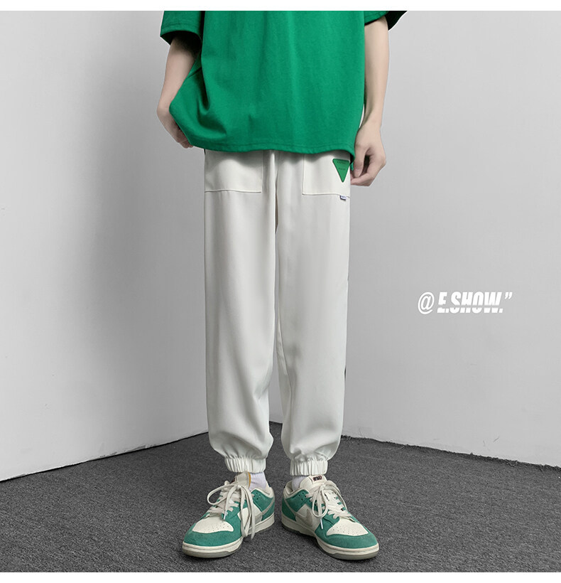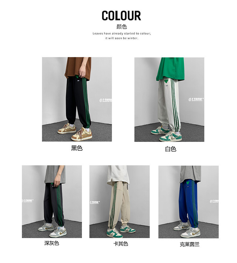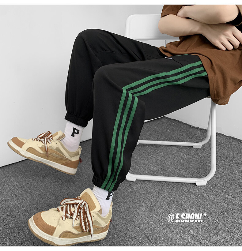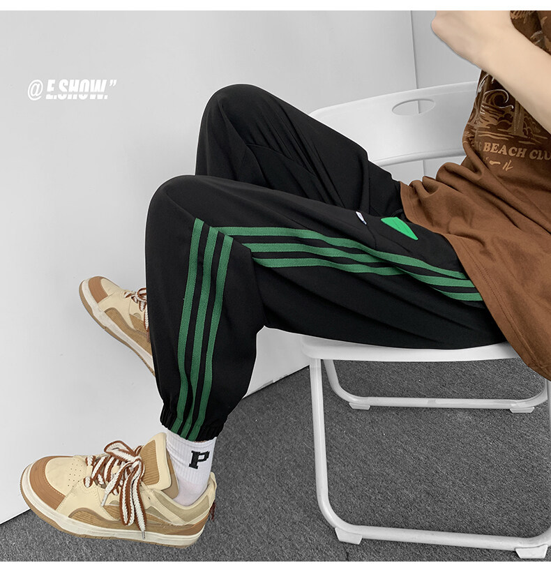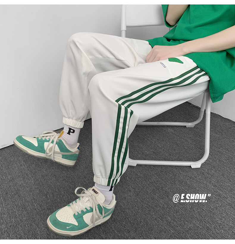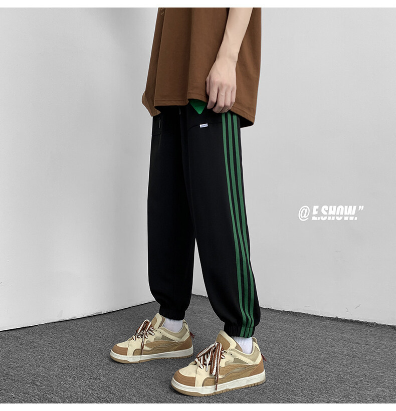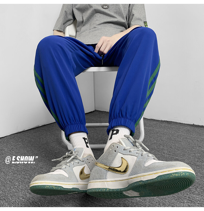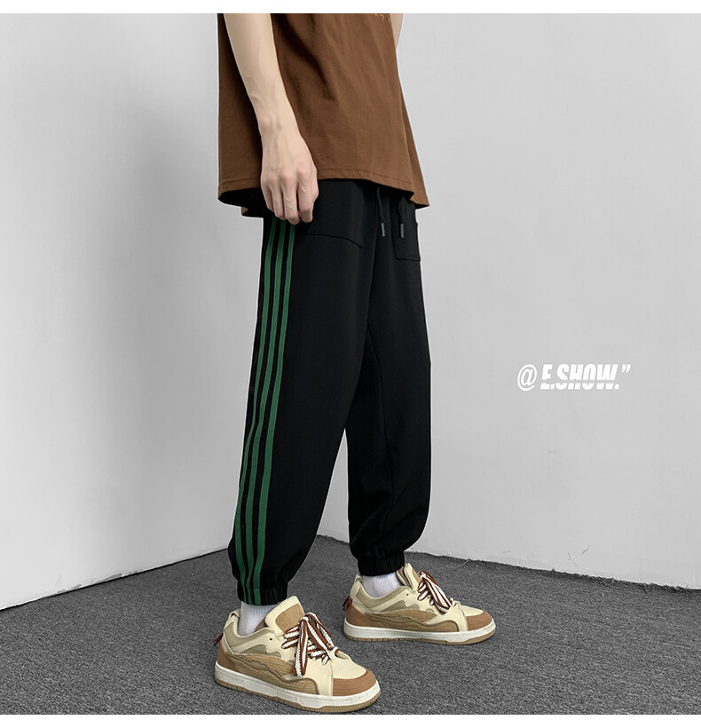 2022夏季休闲裤斜纹冰丝休闲裤子三条杠直筒束脚裤校裤