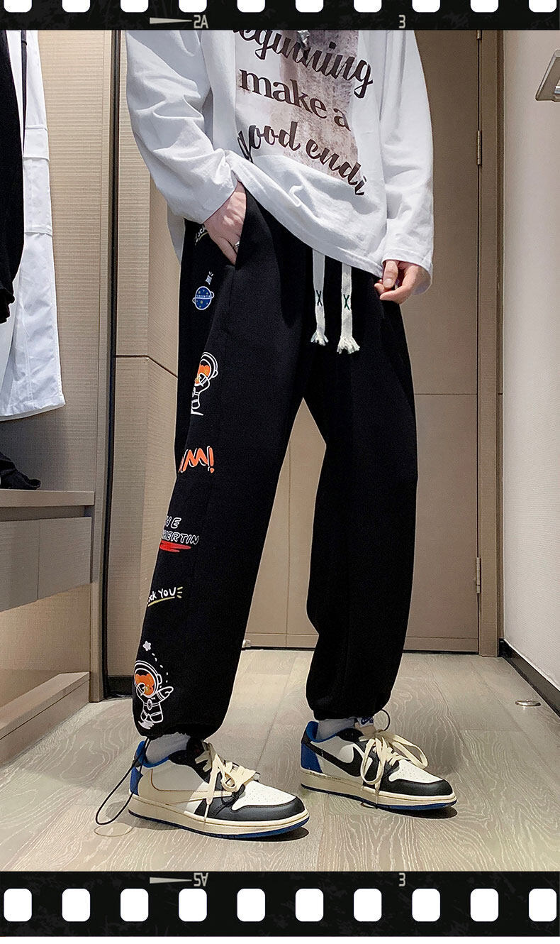 2022新款潮流休闲运动卫裤九分裤男大码长裤宽松束脚直筒