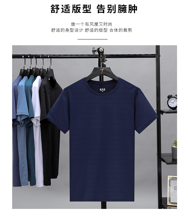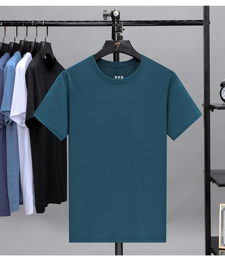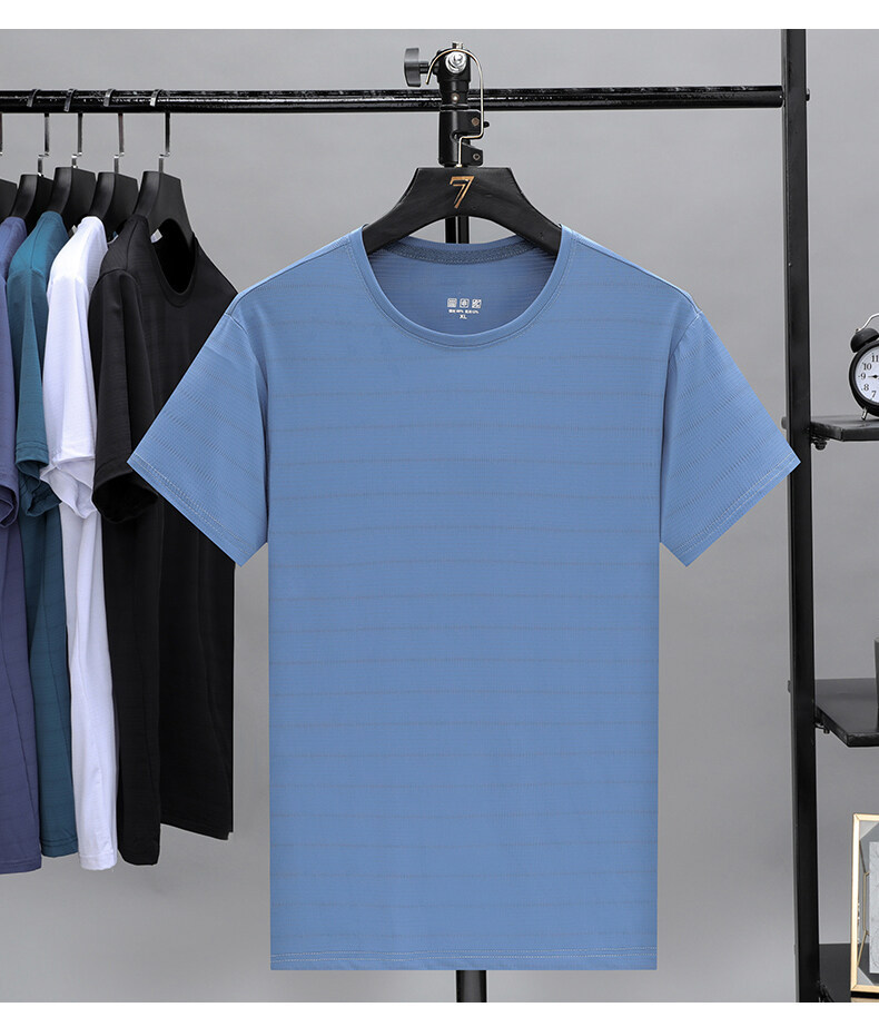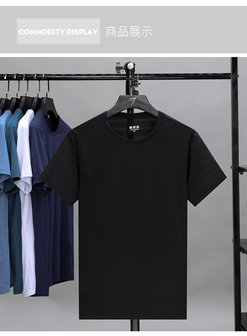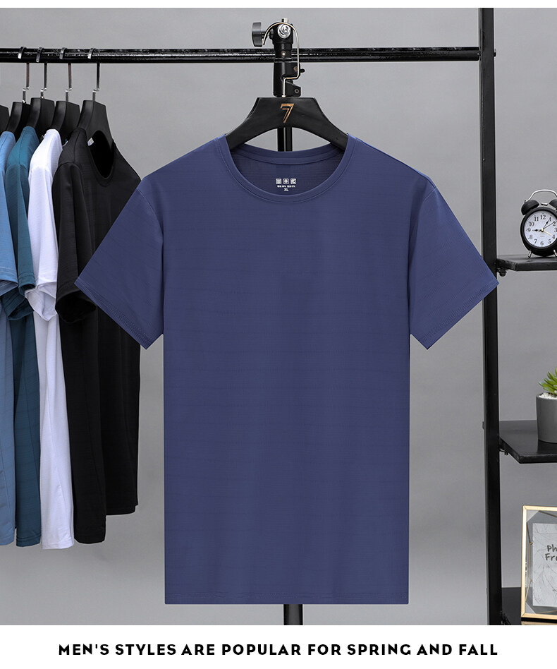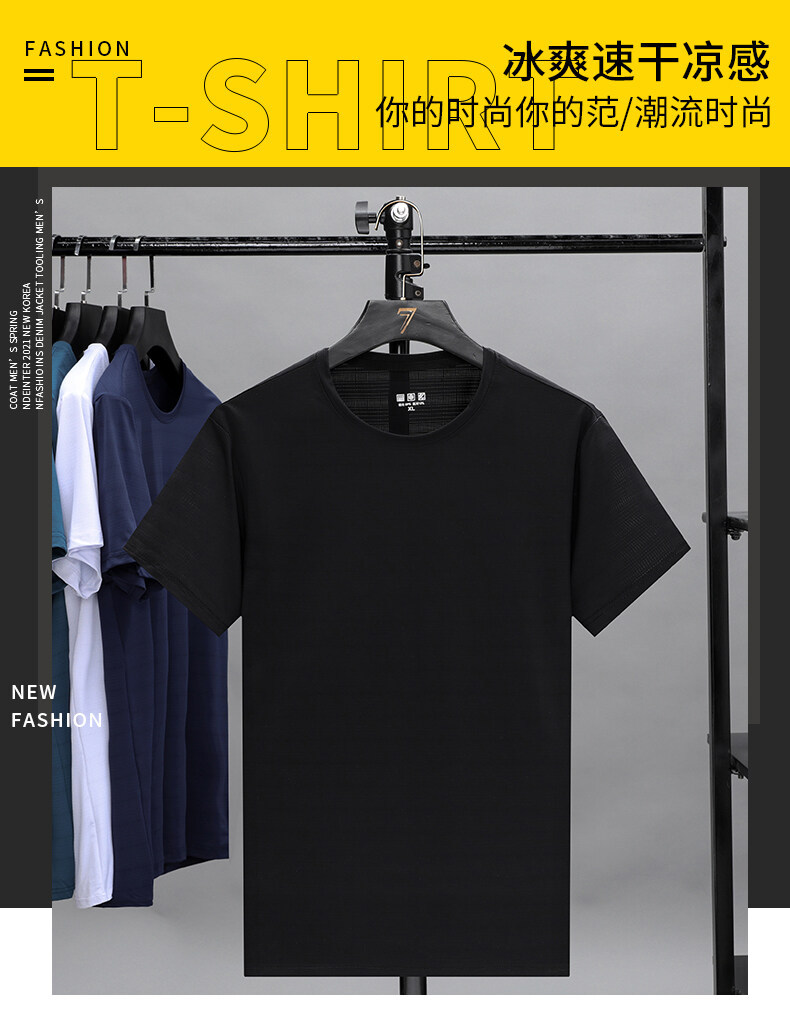 2022夏季冰丝薄款透气短袖t恤男士休闲修身打底衫速干上衣服