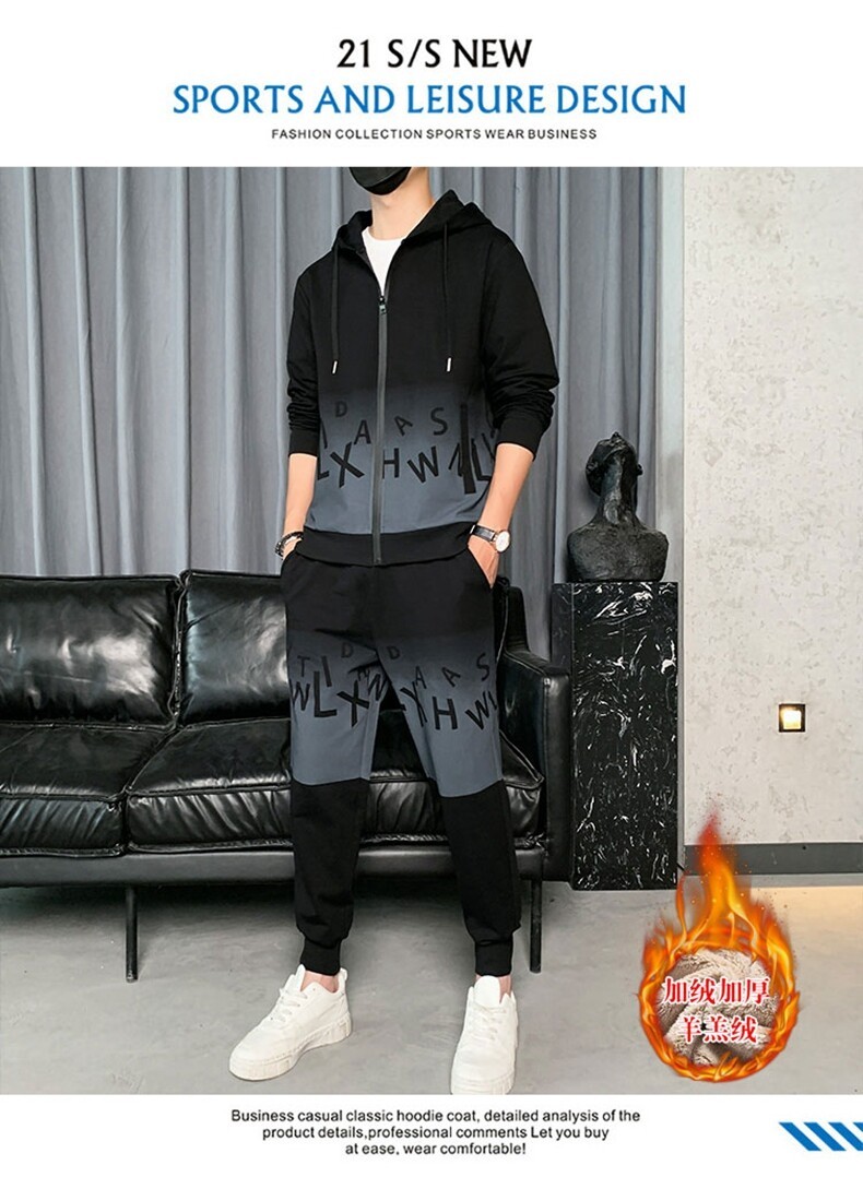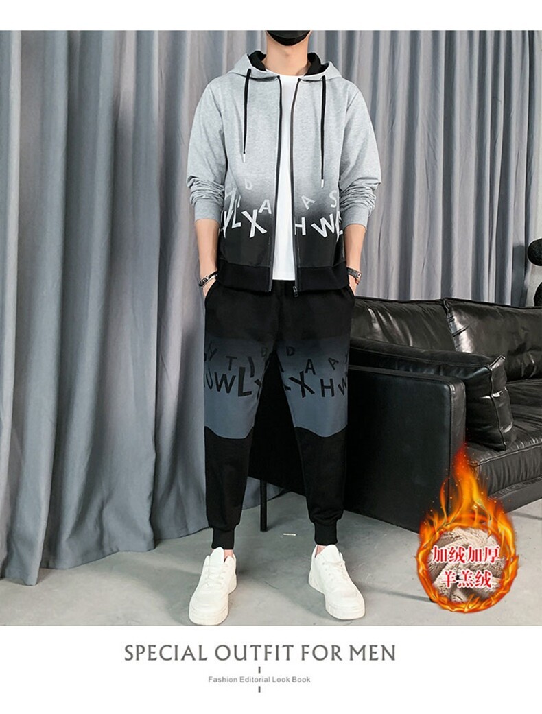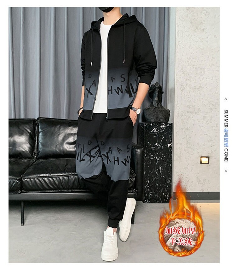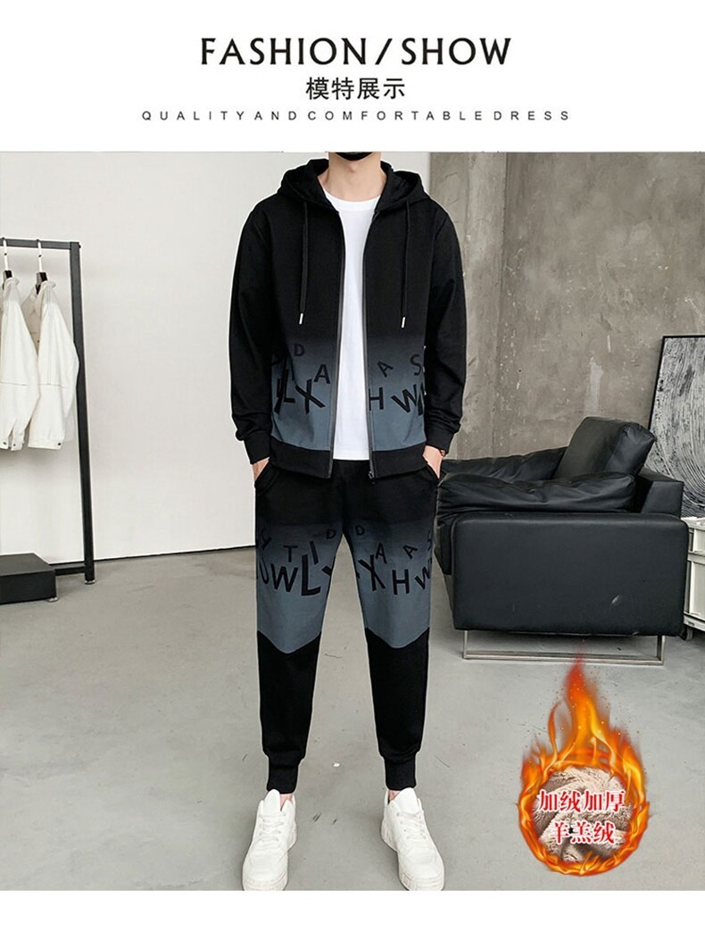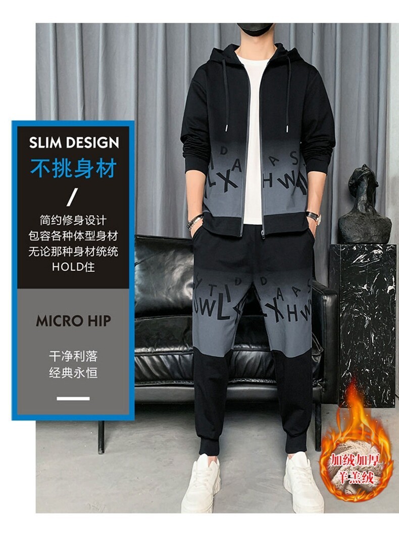 2022运动套装男春秋新款运动加绒青少年休闲套装两件套