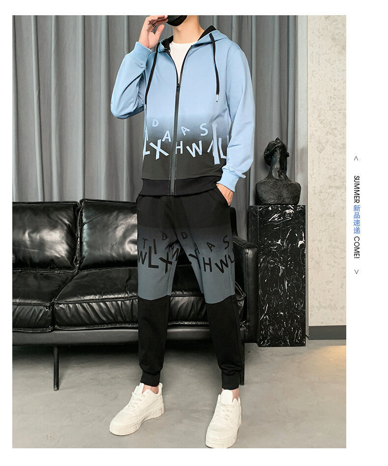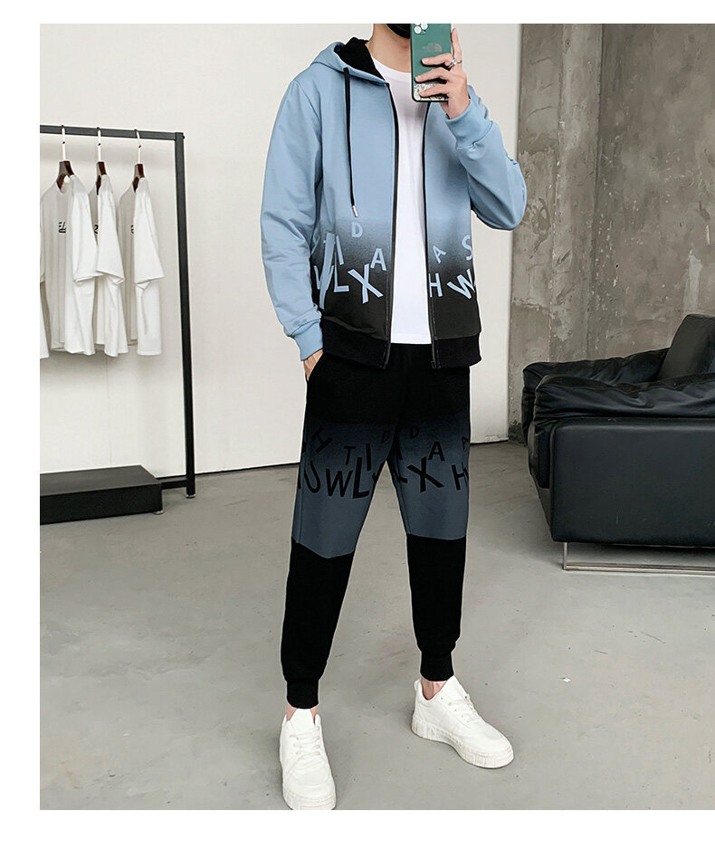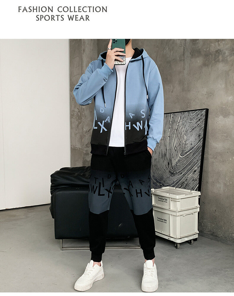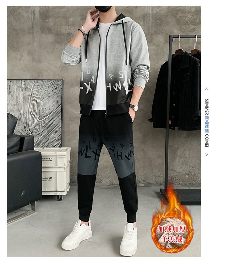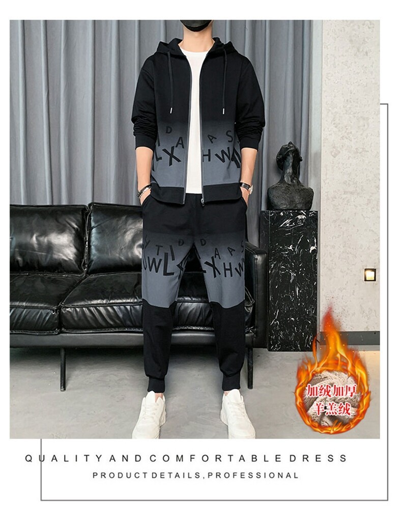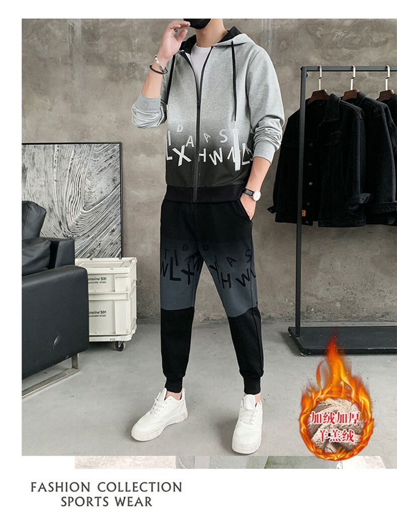 2022运动套装男春秋新款运动加绒青少年休闲套装两件套