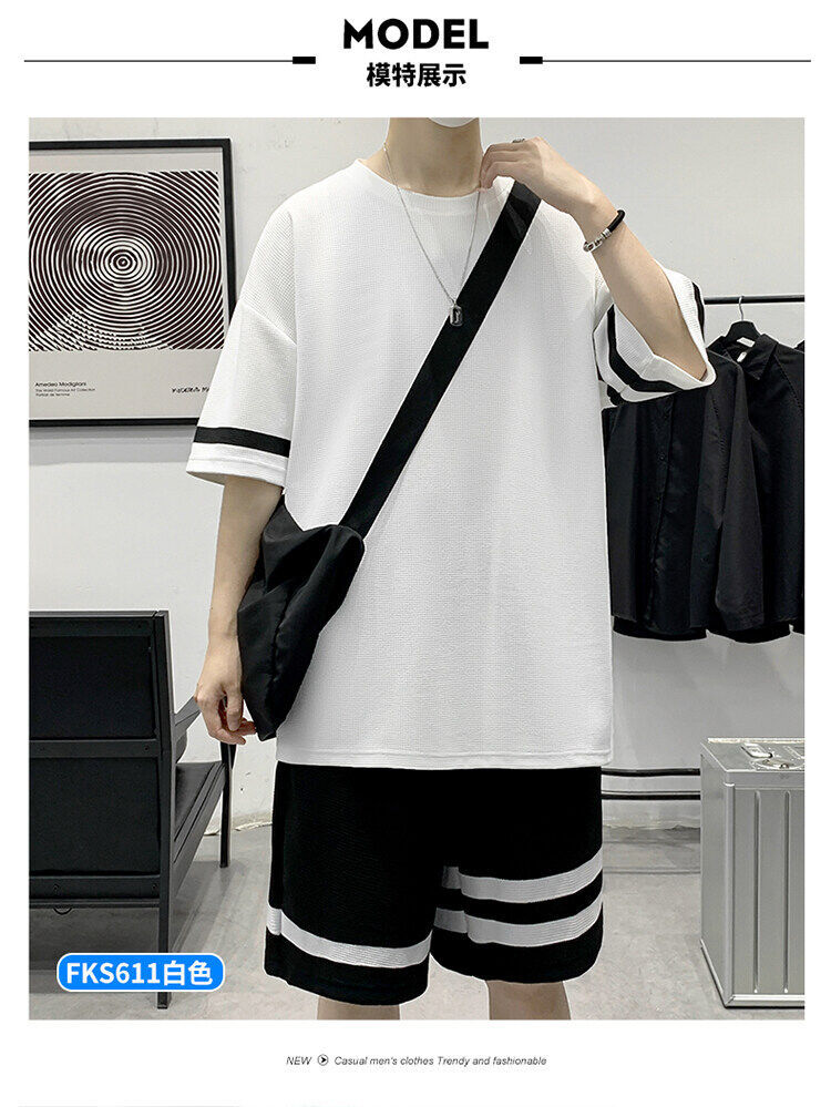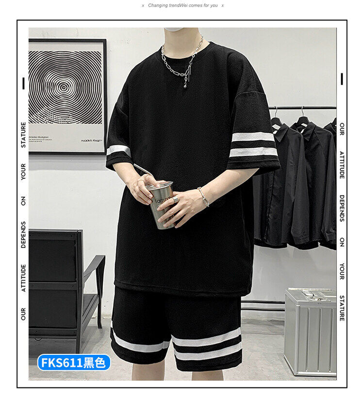 2021男士春夏季新款短袖短裤运动休闲套装韩版潮流时尚百搭