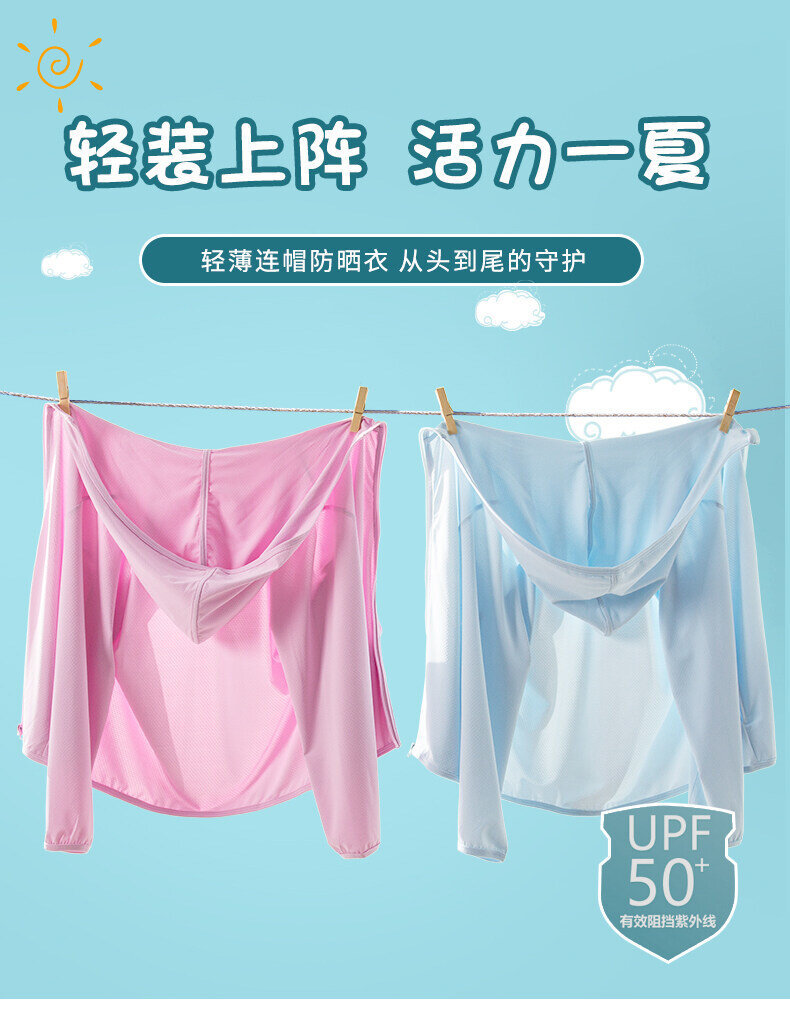 2022新款儿童搭配YKK拉链防晒达标冰丝防晒衣可印绣