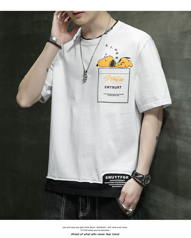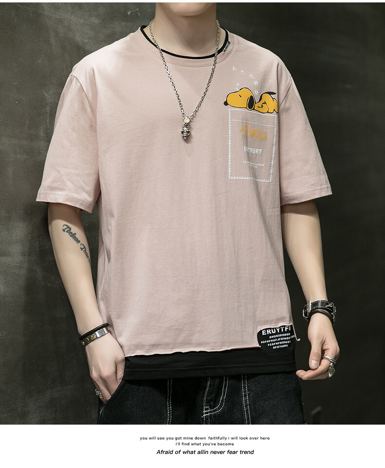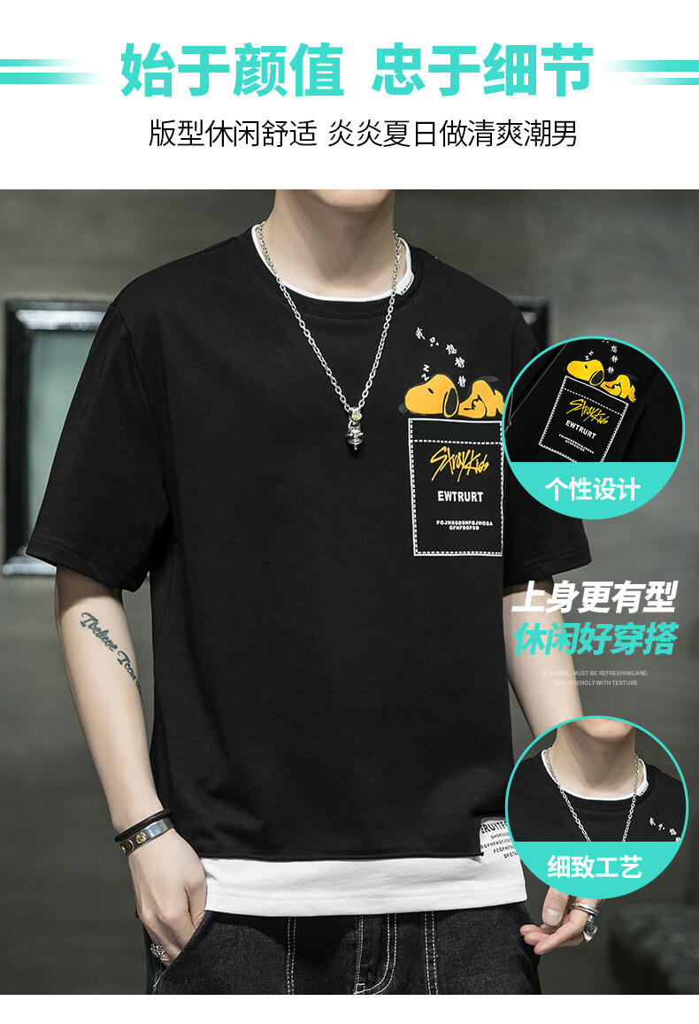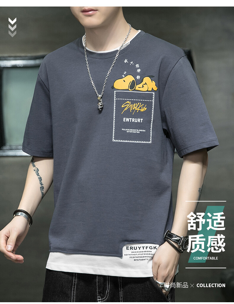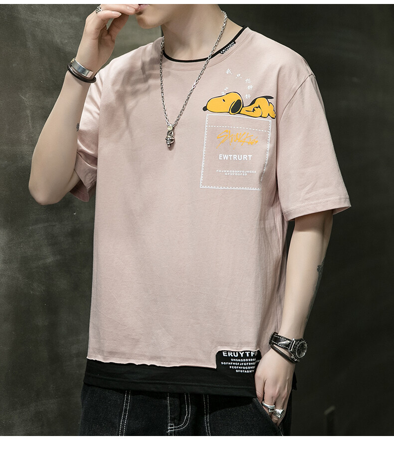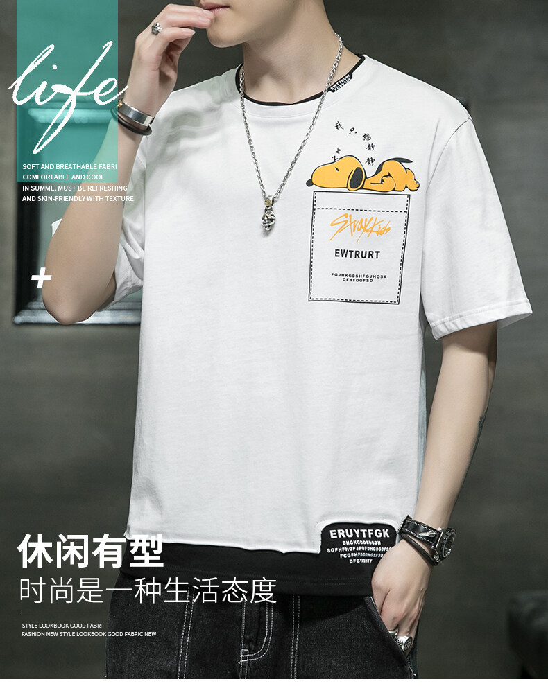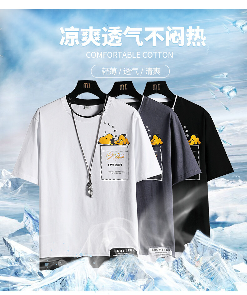 短袖男夏季韩版潮流男士t恤帅气圆领宽松体恤男生卡通印花夏衣服