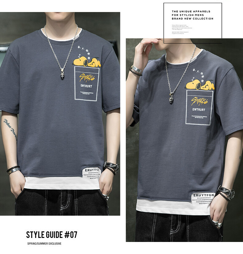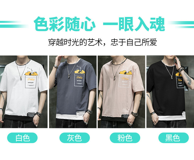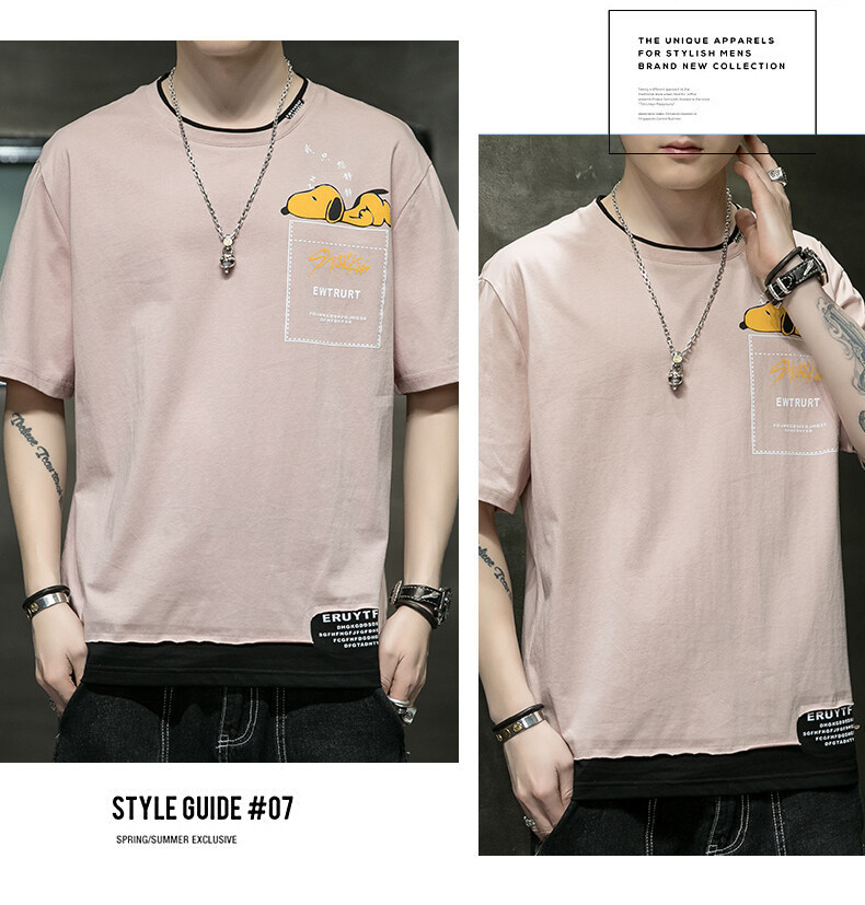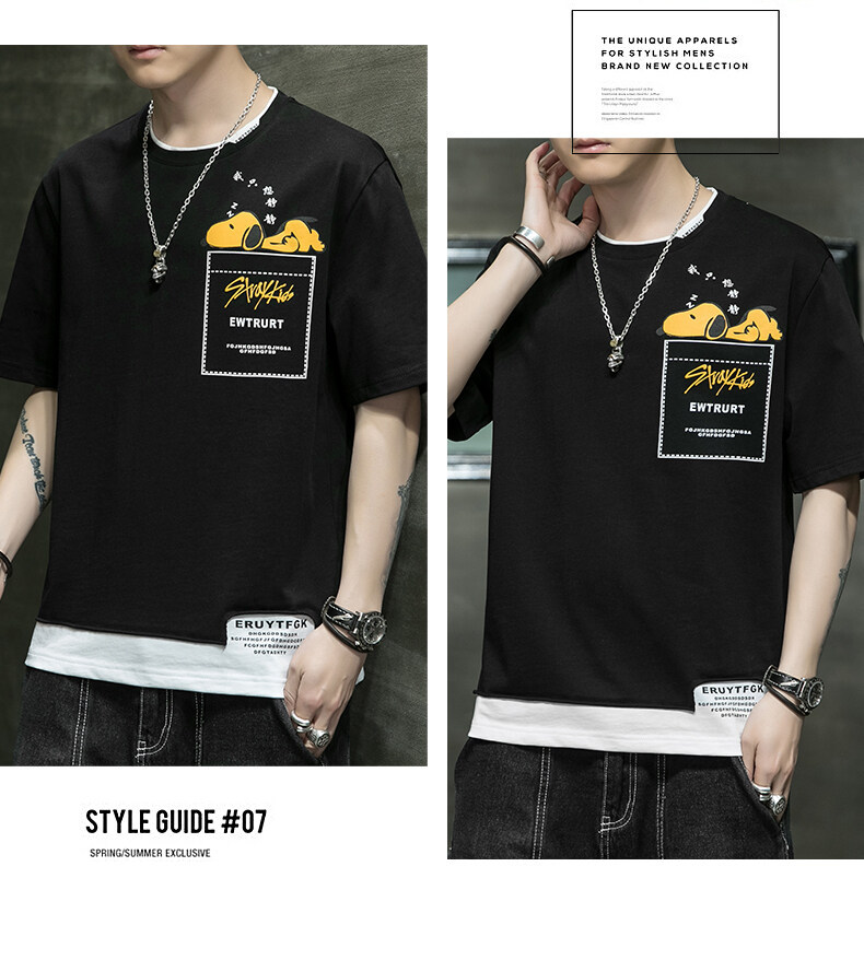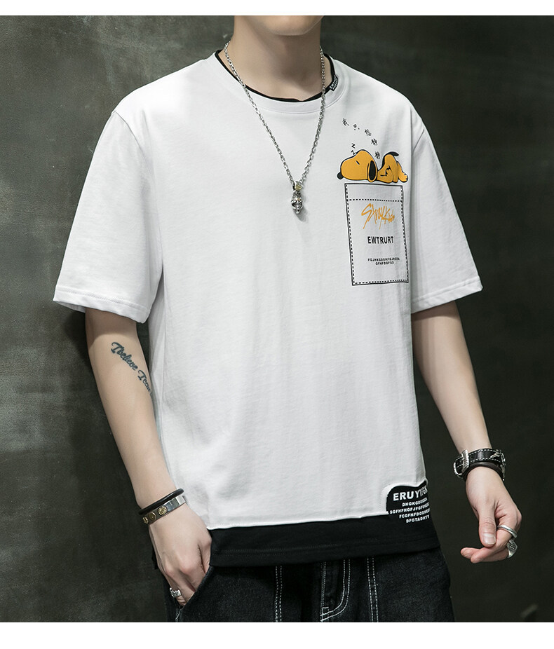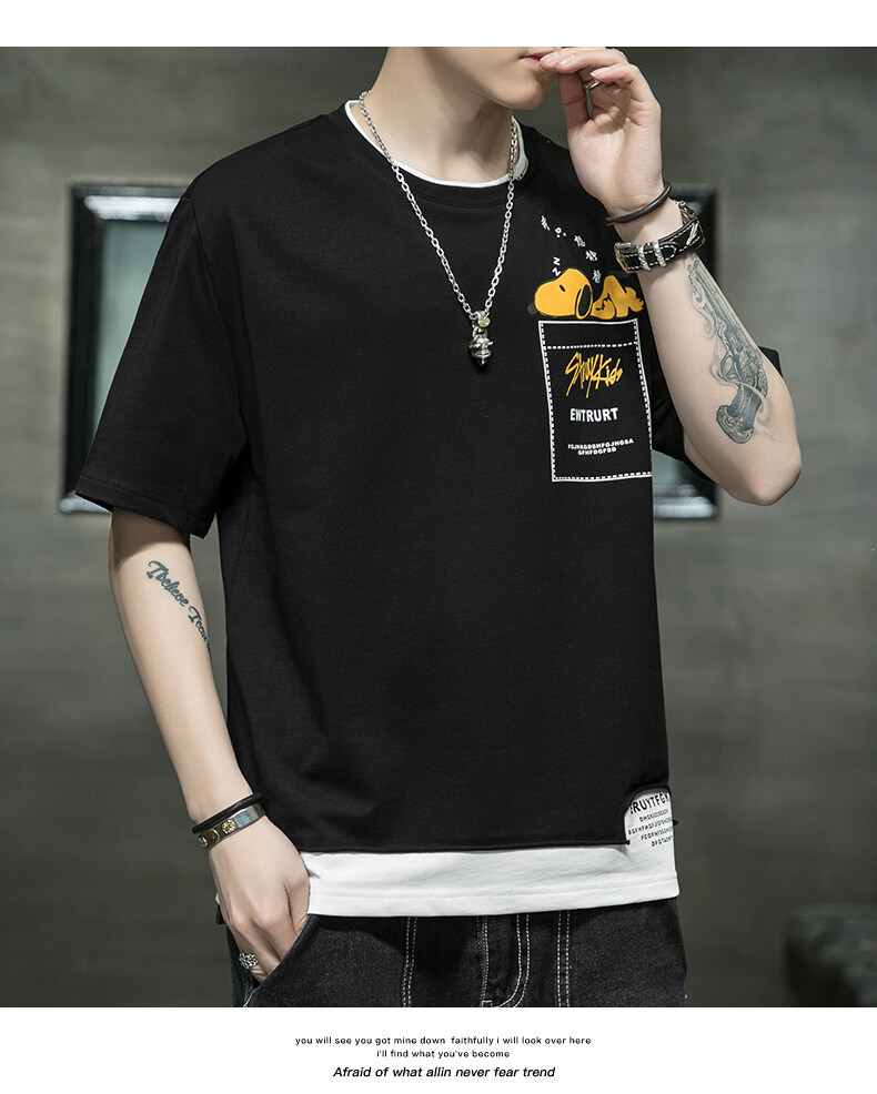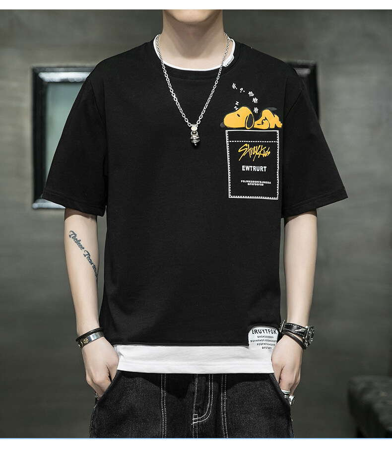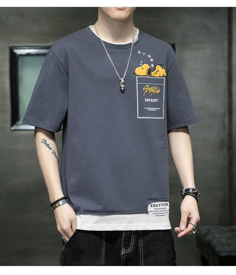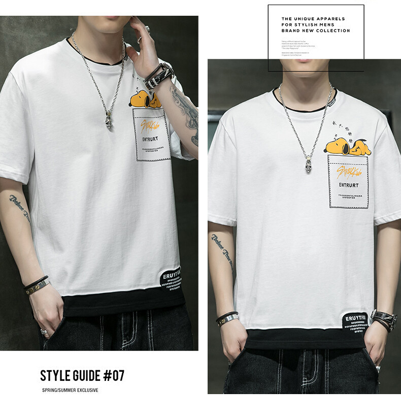 短袖男夏季韩版潮流男士t恤帅气圆领宽松体恤男生卡通印花夏衣服