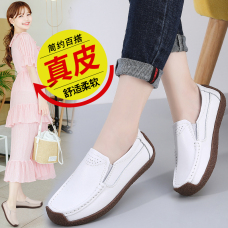 2020年秋冬真皮女式时尚休闲鞋平底鞋妈妈鞋