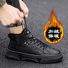 休闲皮面加棉鞋保暖。防滑